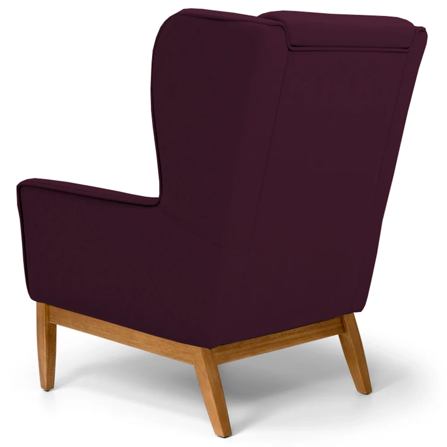 Poltrona Decorativa Base Manu Madeira Milena Veludo C-292 Uva - Domi 78372