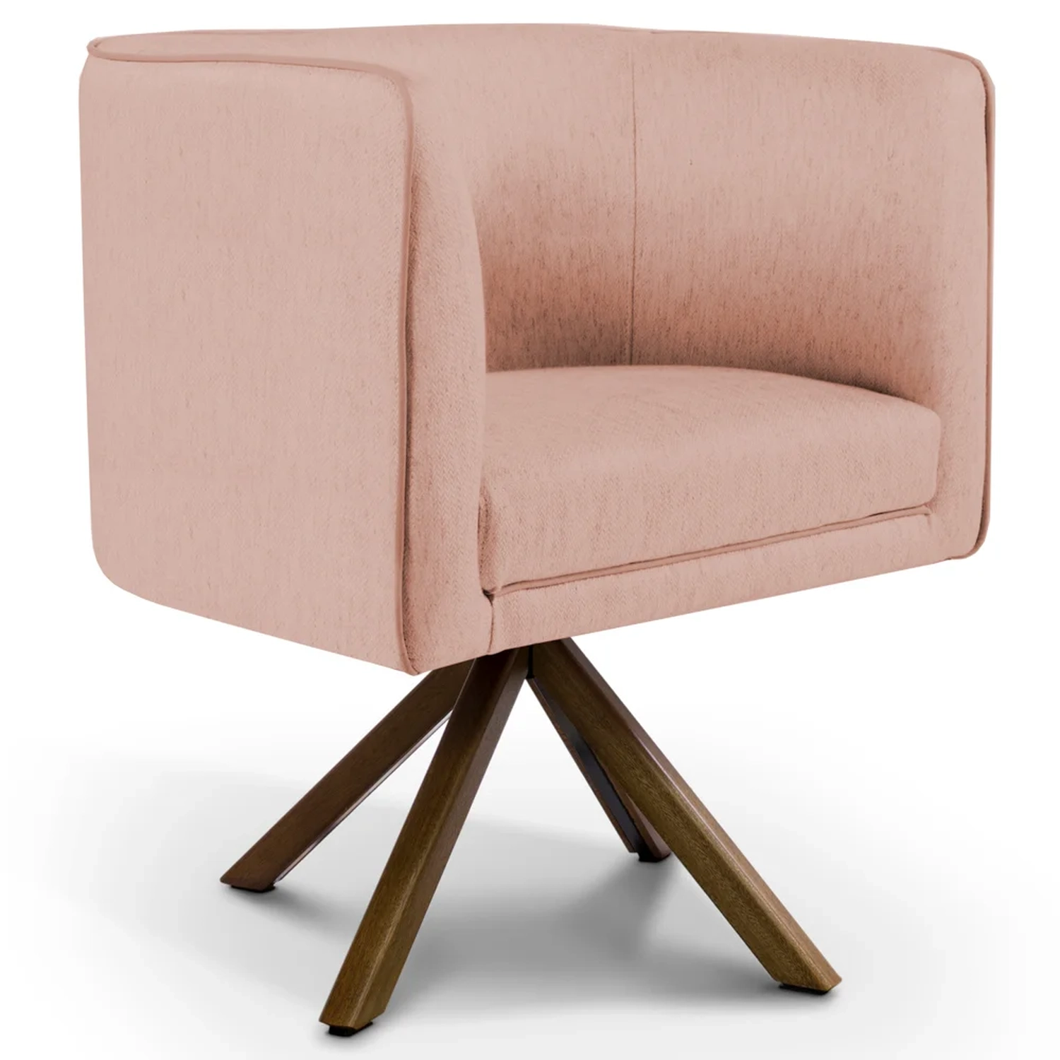 Poltrona Decorativa Giratória Base Giromad Madeira Betina C-105 Linho Rosê - Domi 77329