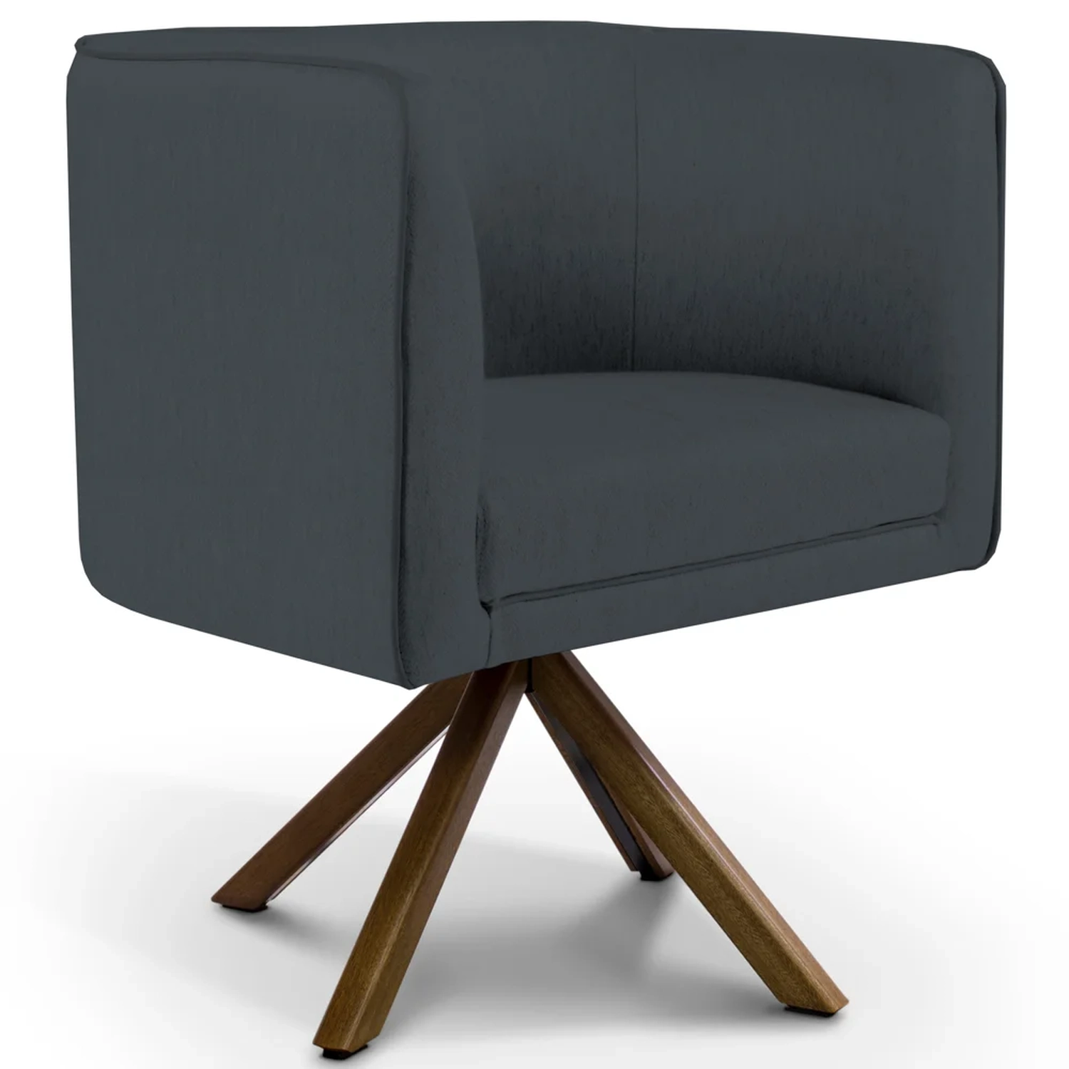 Poltrona Decorativa Giratória Base Giromad Madeira Betina C-317 Veludo Cinza - Domi 77287
