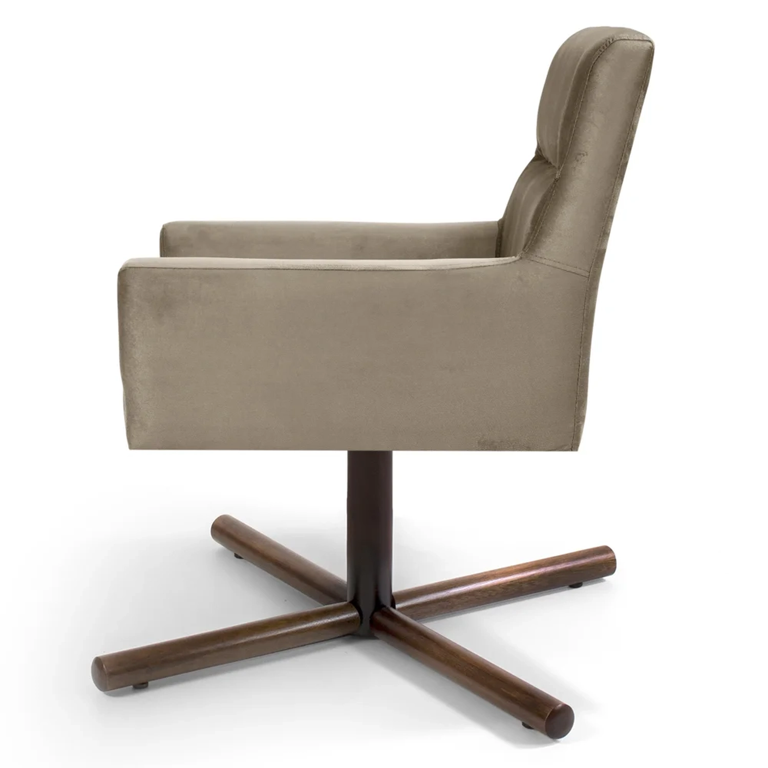 Poltrona Decorativa Giratória Base Xis Madeira Angel Veludo C-68 Marrom - Domi 77033