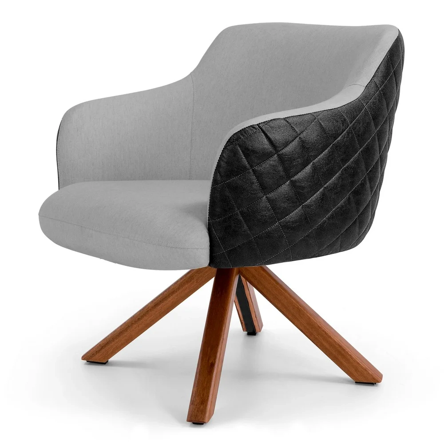 Poltrona Decorativa Jade Base Giromad Giratória Corano Tressê Lona C-05/D-315 Cinza Claro - Domi 79016