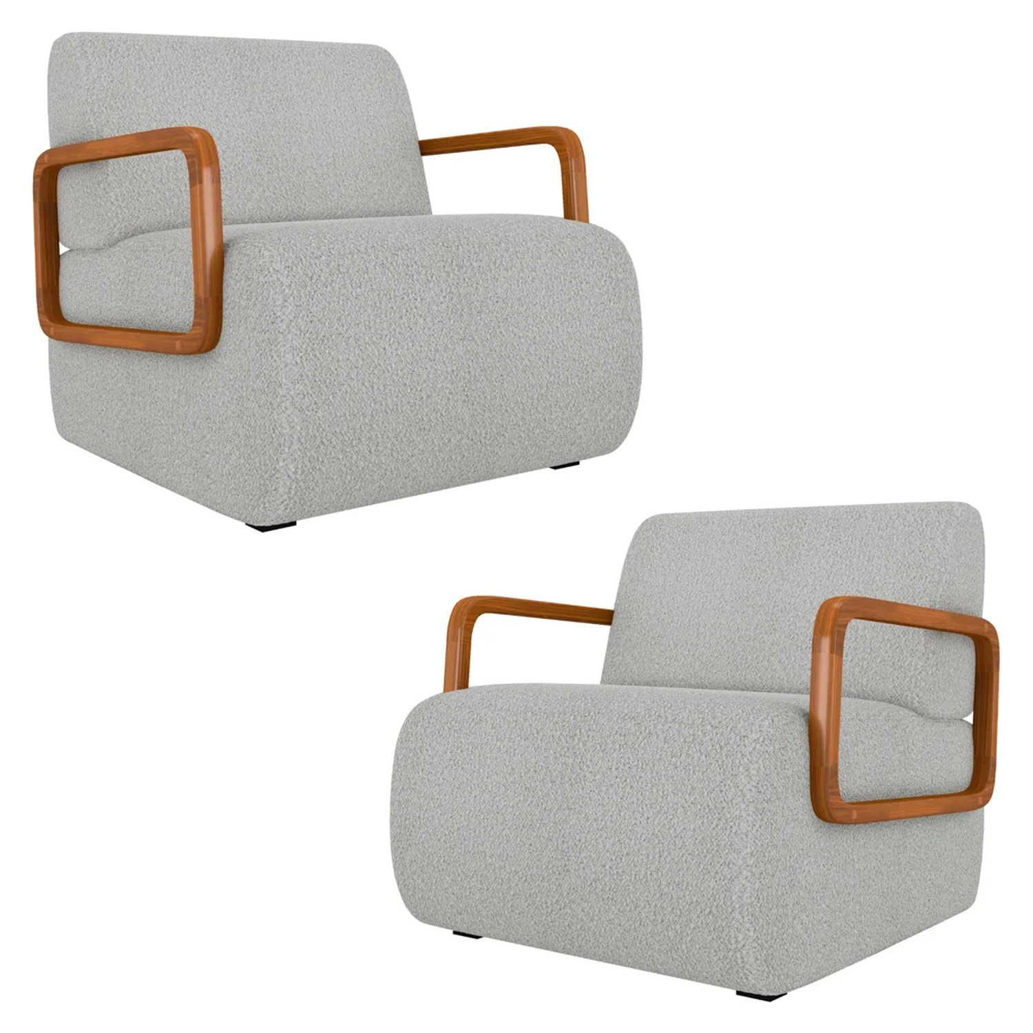 Deixe-se envolver pelo conforto e estilo da Poltrona Decorativa Orgânica para Sala Kit 2 Belarus Z08 Boucle Cinza Claro, da Mpozenato.