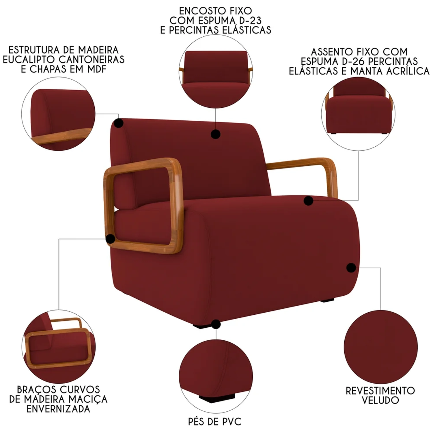 Deixe-se envolver pelo conforto e estilo da Poltrona Decorativa Orgânica para Sala Kit 2 Belarus Z08 Veludo Vermelho, da Mpozenato.