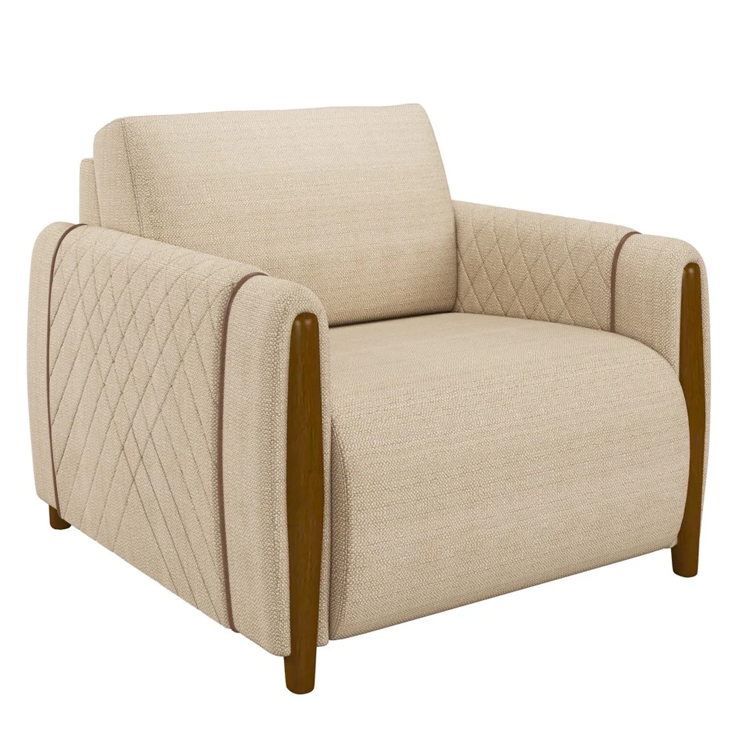 Para quem busca elegância e sofisticação aliados à funcionalidade, precisa conhecer a Poltrona Decorativa Amaranto Linho Champanhe, da Mpozenato. Com um design clássico, essa poltrona para sala combina materiais e texturas que criam um produto atemporal, enquanto os detalhes dos braços em tressê agregam delicadeza e charme.