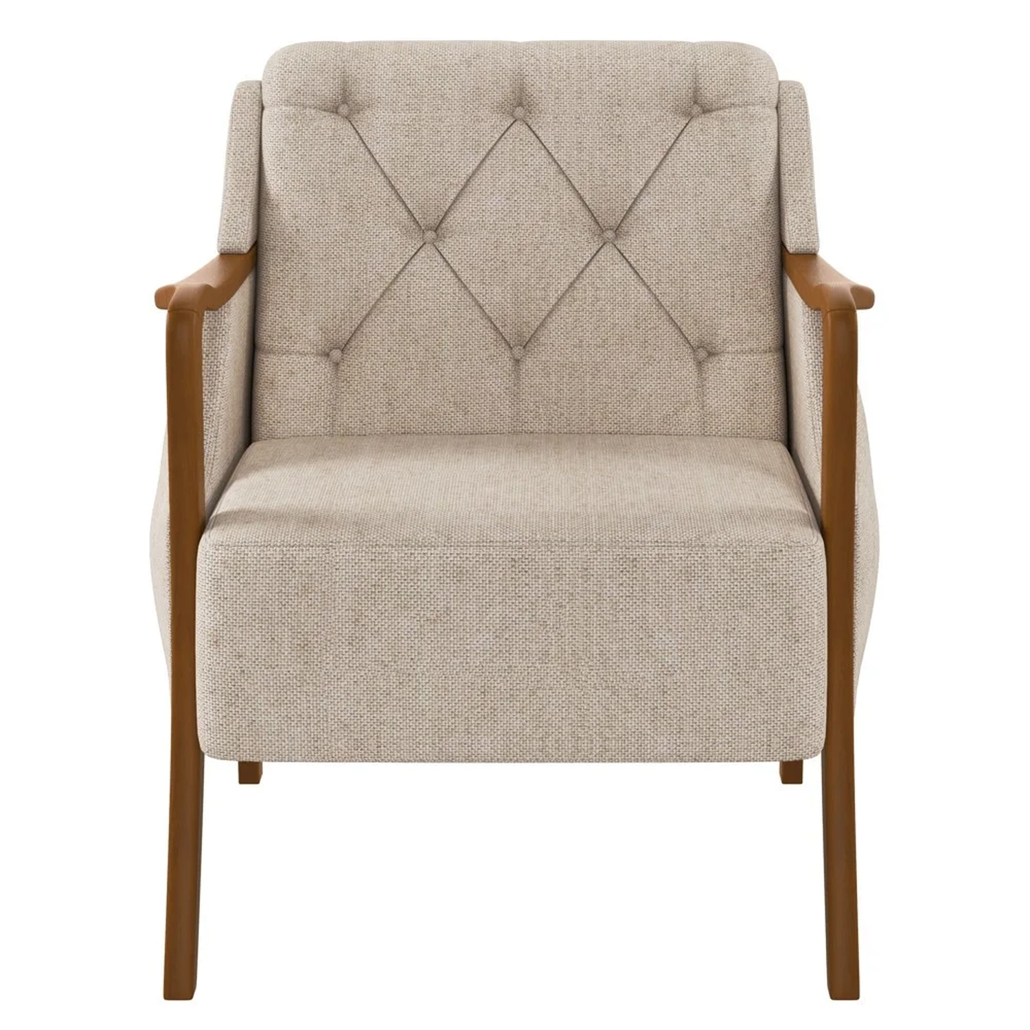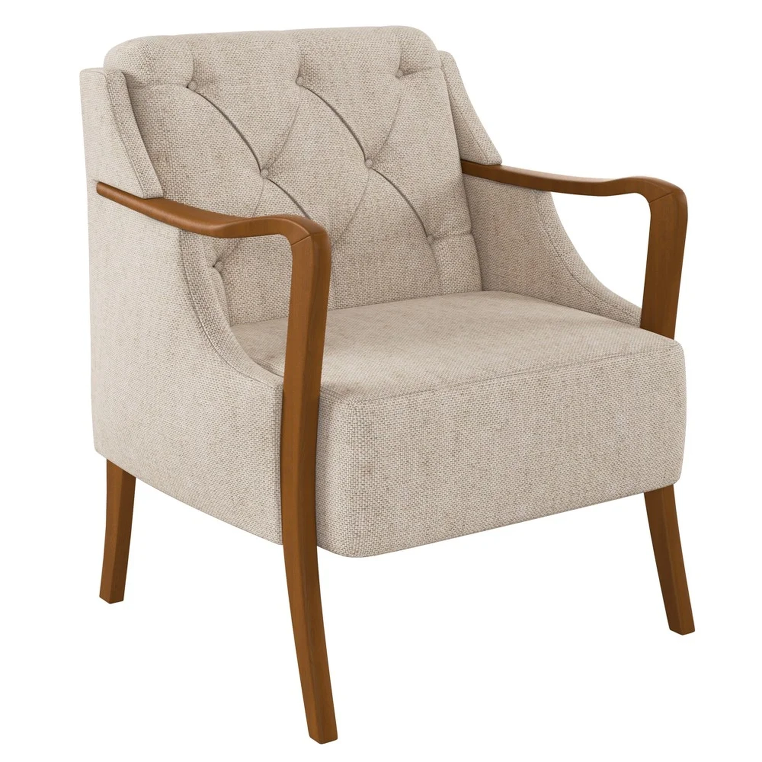 Com um design clássico aliado ao toque de contemporaneidade, essa poltrona para sala atende todos os requisitos de bom gosto e qualidade, já que consegue combinar materiais e texturas como a madeira dos braços e o revestimento do estofado. Além disso, as bordas, braços e pés curvos juntamente com a costura capitonê do completam a lista de adjetivos.