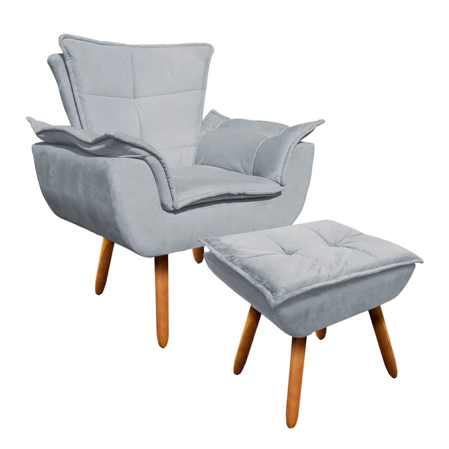 Poltrona Decorativa Pés Palito com Puff Opla Suede Cinza - Ibiza 660044090