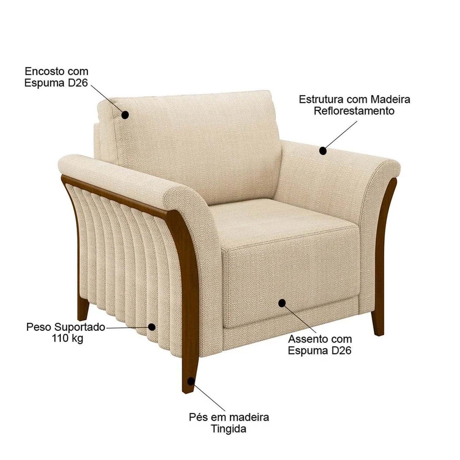 Material do Assento: Espuma D26/Manta Acrílica.