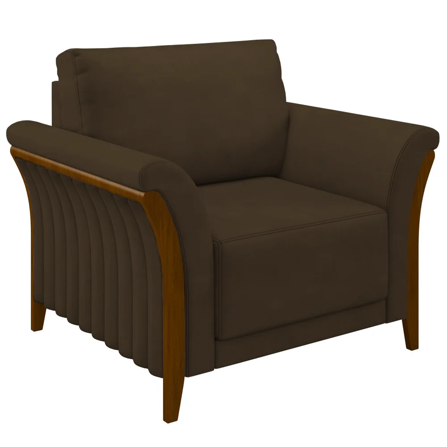 A combinação do desenho slim com os detalhes dos braços curvos e os pés em madeira resulta em uma poltrona para sala atemporal, que combina tanto com a decoração clássica quanto contemporânea. Mas, além dos atributos estéticos, a Poltrona Roya também é a tradução de conforto e bem-estar, sem contar a versatilidade, já que pode ser disposta em vários ambientes, desde a sala de estar, ao quarto, recepção ou escritório.