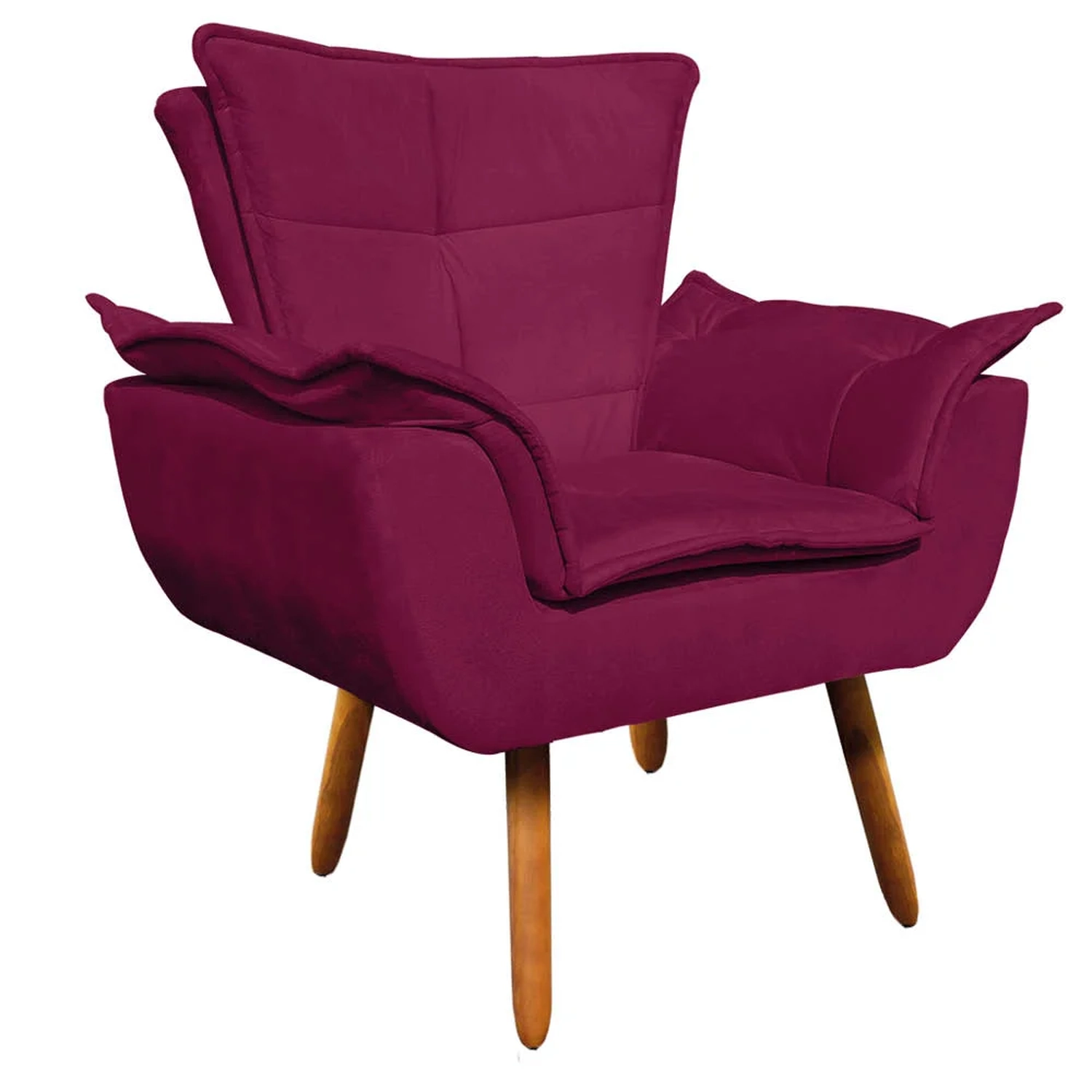 Poltrona Decorativa Sala de Estar Pés Palito Opla Suede Bordô - Ibiza 78949
