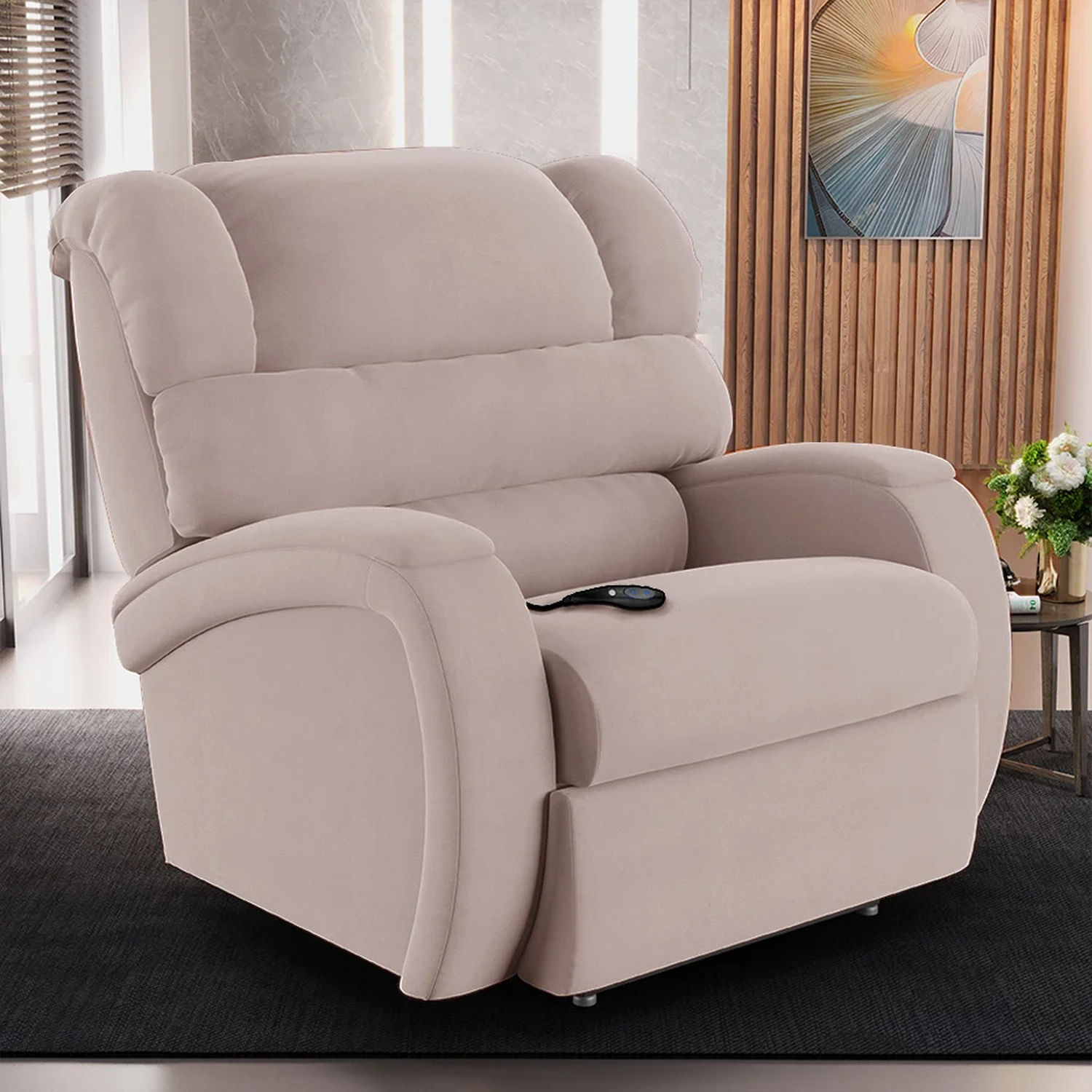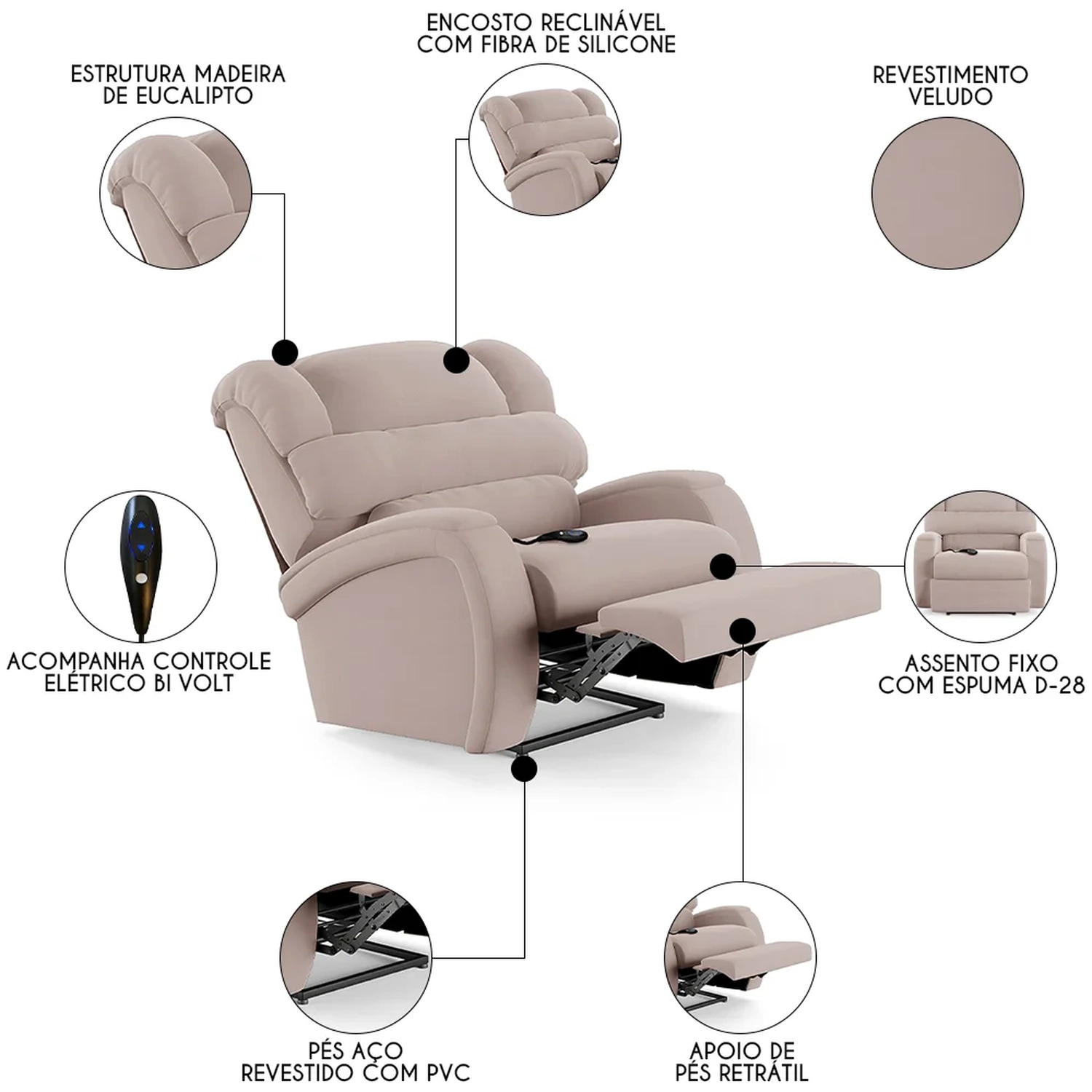 Imagine transformar sua Sala De Estar em um espaço de entretenimento de última geração com a Poltrona do Papai Reclinável Kalie Controle Power Elétrico FH9 Veludo Rosê, da Mpozenato!