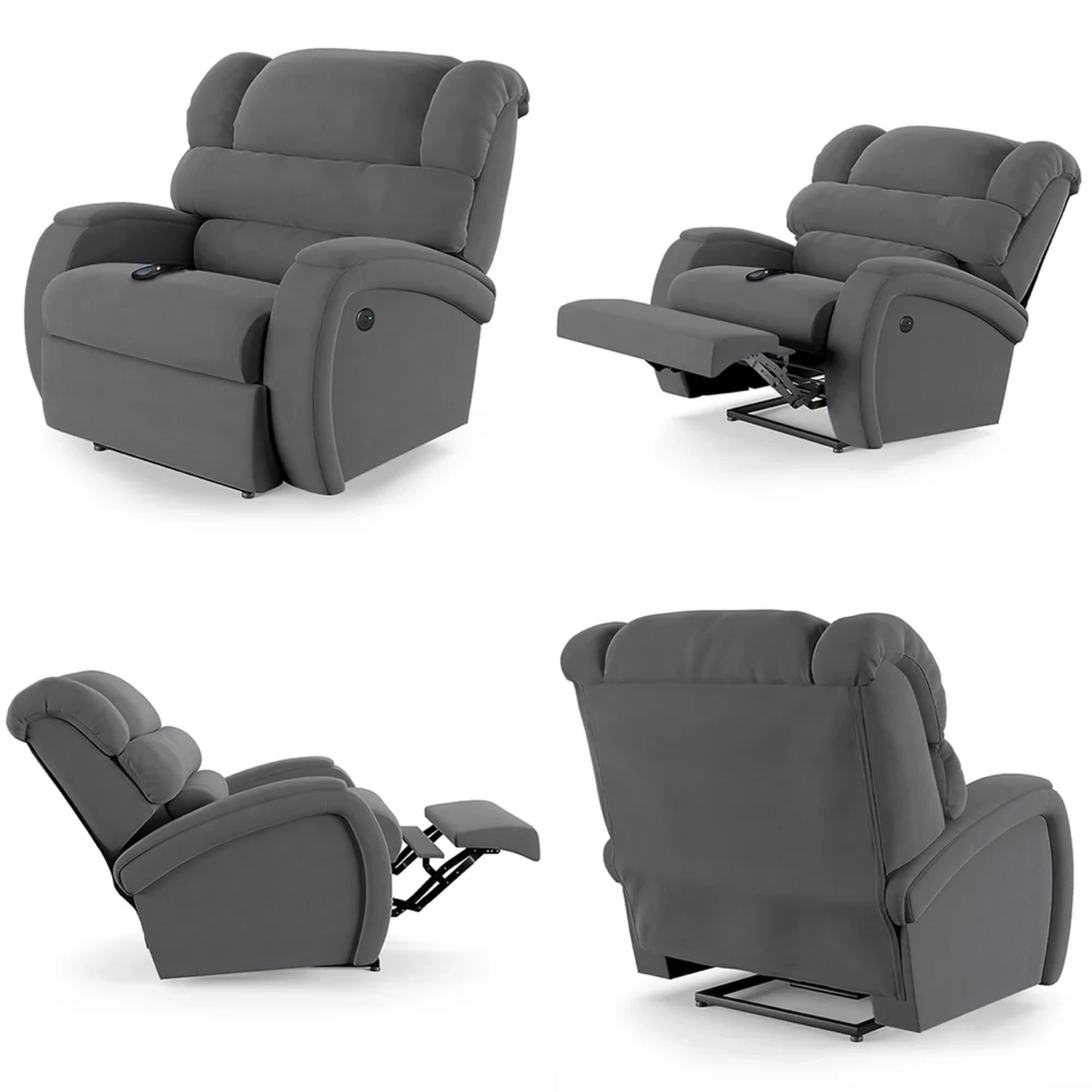 Inove a sua Sala De Estar com a Poltrona do Papai Reclinável Kalie Controle Power Elétrico FH9 Veludo Cinza, da Mpozenato em um espaço de entretenimento de última geração!