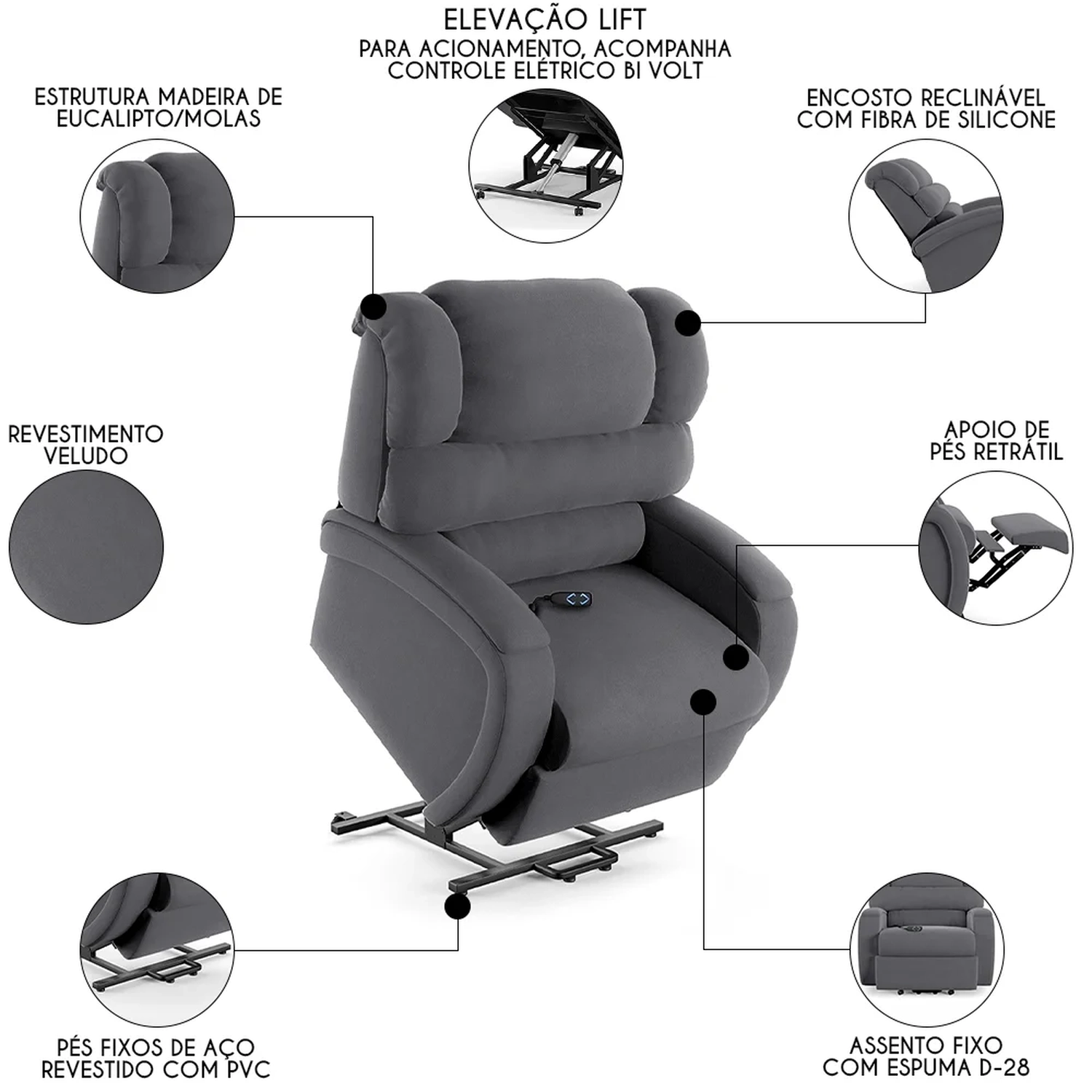 Mecanismo: Controle Elétrico Lift de Elevação Bi Volt.