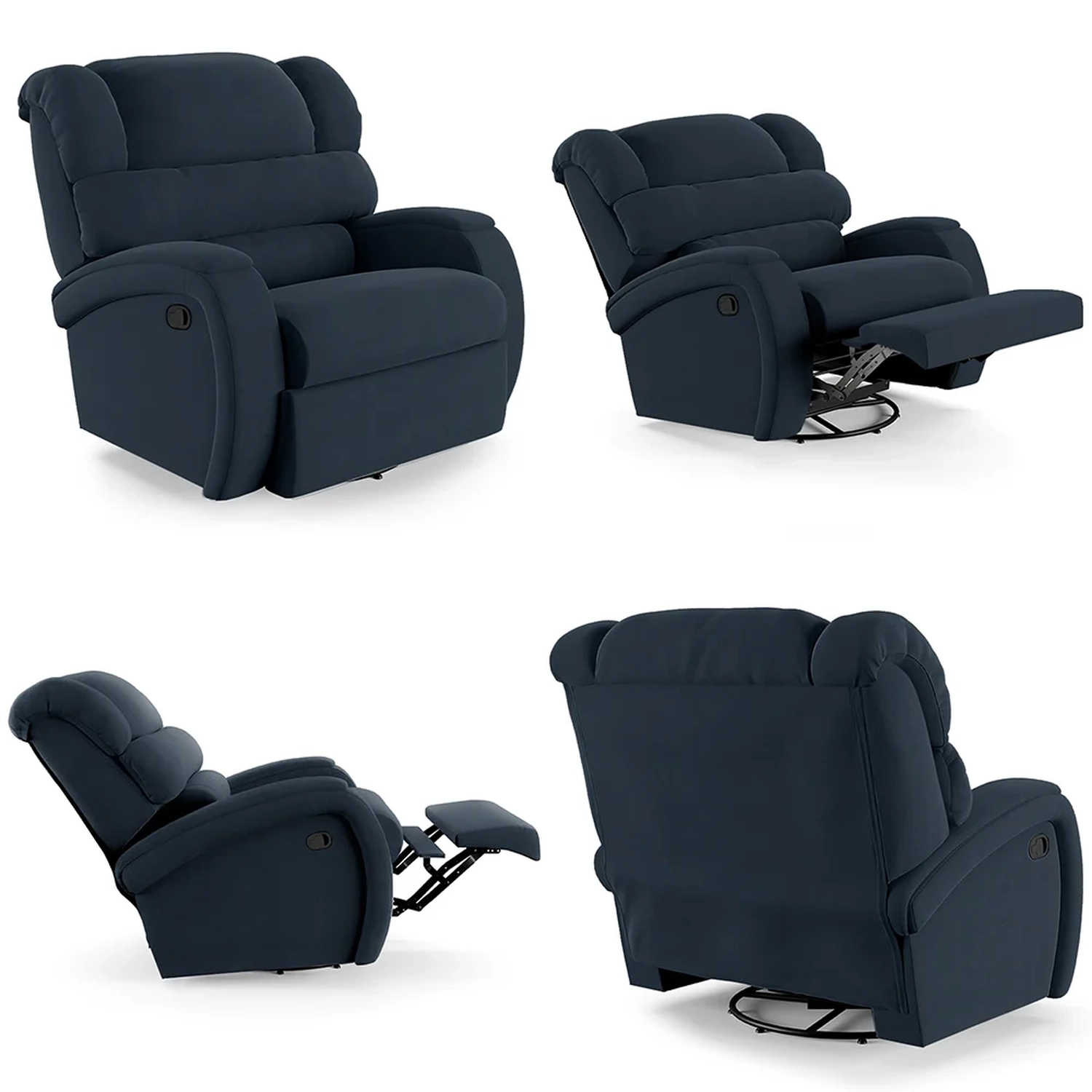 Transforme a sua Sala De Estar em um espaço de entretenimento comparável a uma sala de cinema privada! A Poltrona do Papai Reclinável Kalie Glider Giratória FH9 Veludo Azul, da Mpozenato é a adição perfeita para alcançar esse sonho.