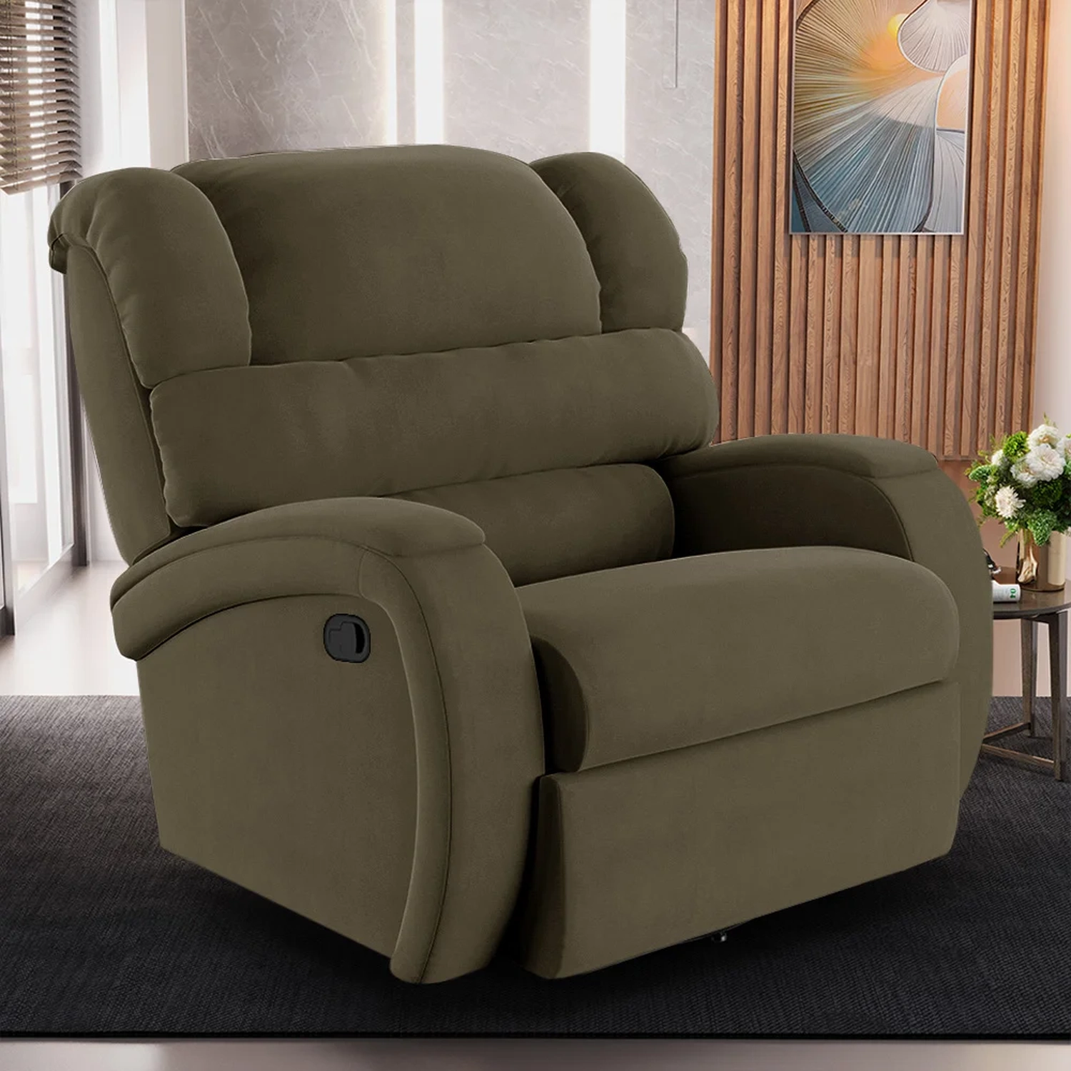 Transforme a sua Sala De Estar em um espaço de entretenimento comparável a uma sala de cinema privada! A Poltrona do Papai Reclinável Kalie Glider Giratória FH9 Veludo Capuccino, da Mpozenato é a adição perfeita para alcançar esse sonho.