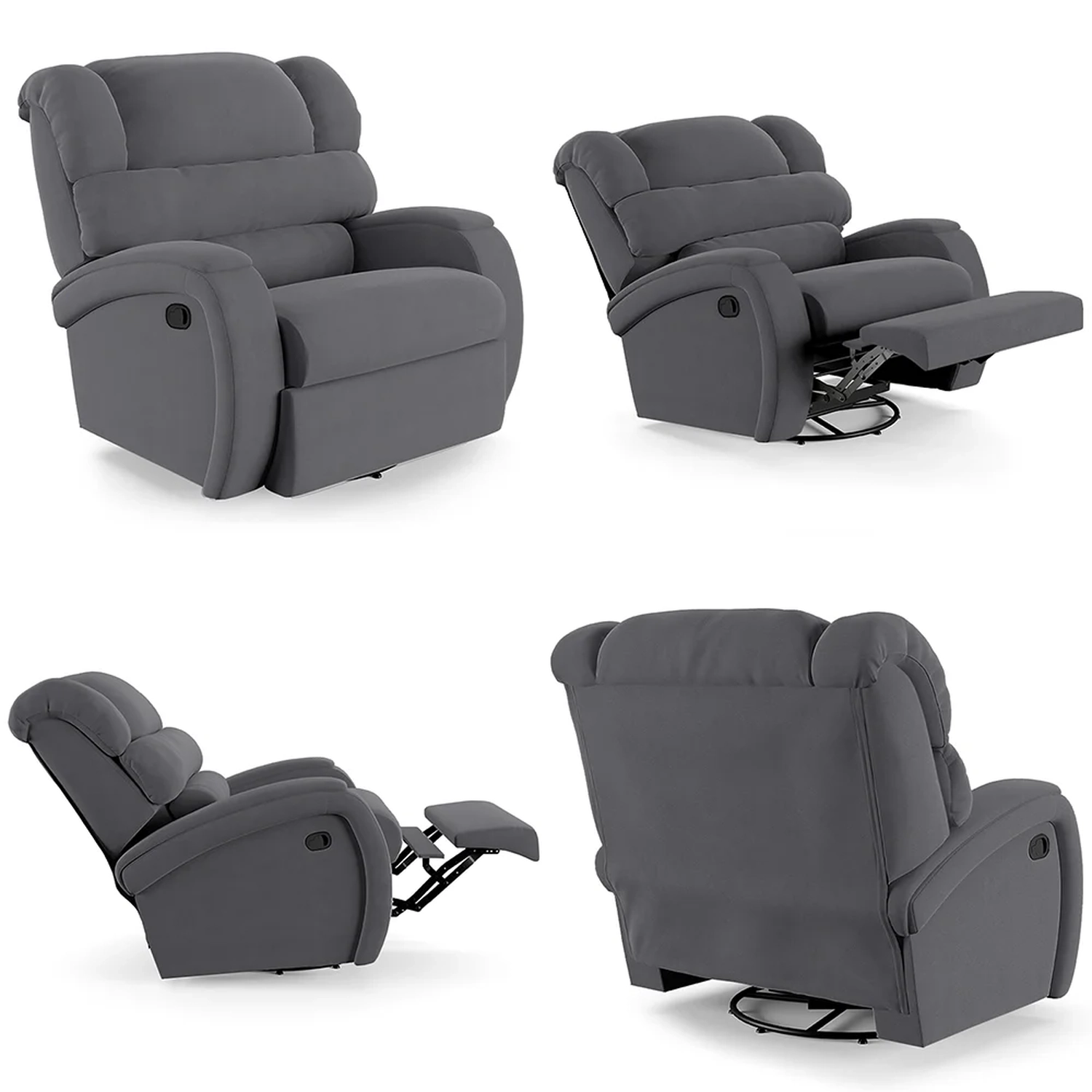 Transforme a sua Sala De Estar em um espaço de entretenimento comparável a uma sala de cinema privada! A Poltrona do Papai Reclinável Kalie Glider Giratória FH9 Veludo Cinza, da Mpozenato é a adição perfeita para alcançar esse sonho.