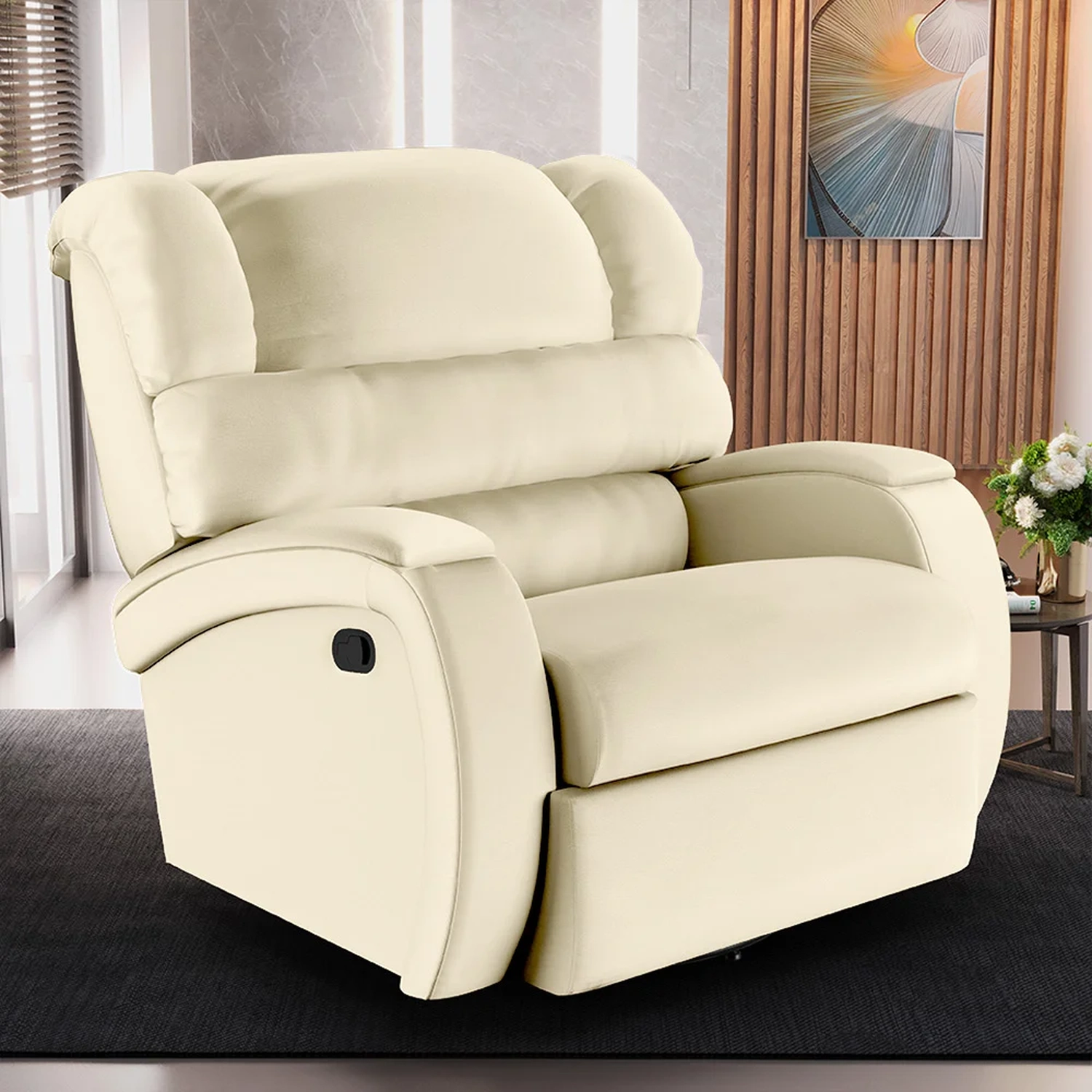 Que tal transformar a sua Sala De Estar em um espaço de entretenimento comparável a uma sala de cinema privada? A Poltrona do Papai Reclinável Kalie Glider Giratória USB FH9 PU Bege, da Mpozenato é a adição perfeita para alcançar esse sonho.