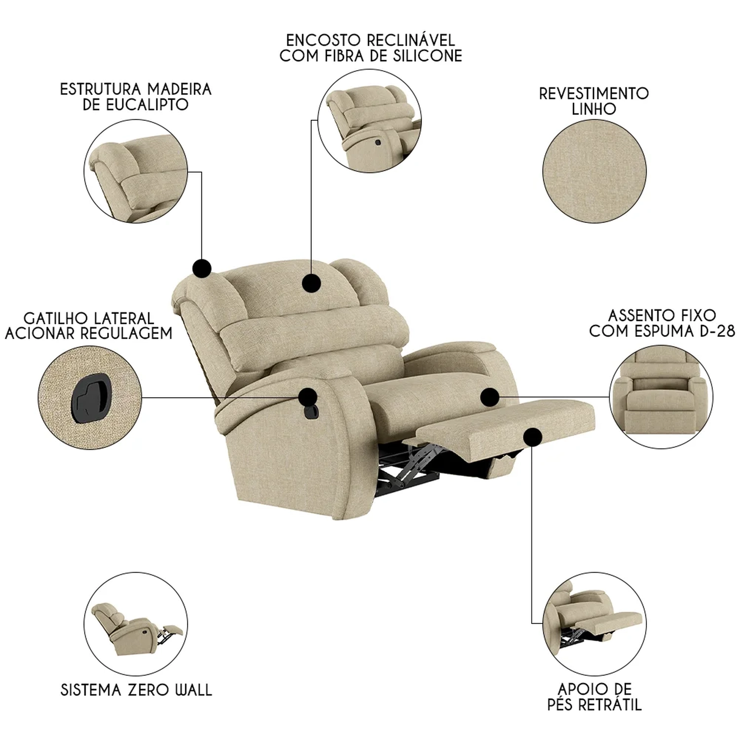 Hora de transformar sua Sala De Estar em um espaço de entretenimento comparável a uma sala de cinema privada? A Poltrona do Papai Reclinável Kalie Manual Gatilho FH9 Linho Bege, da Mpozenato é a adição perfeita para alcançar esse sonho.
