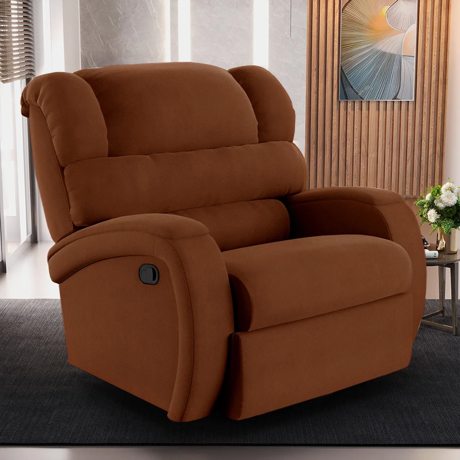 Hora de transformar sua Sala De Estar em um espaço de entretenimento comparável a uma sala de cinema privada? A Poltrona do Papai Reclinável Kalie Manual Gatilho FH9 Veludo Terracota, da Mpozenato é a adição perfeita para alcançar esse sonho.