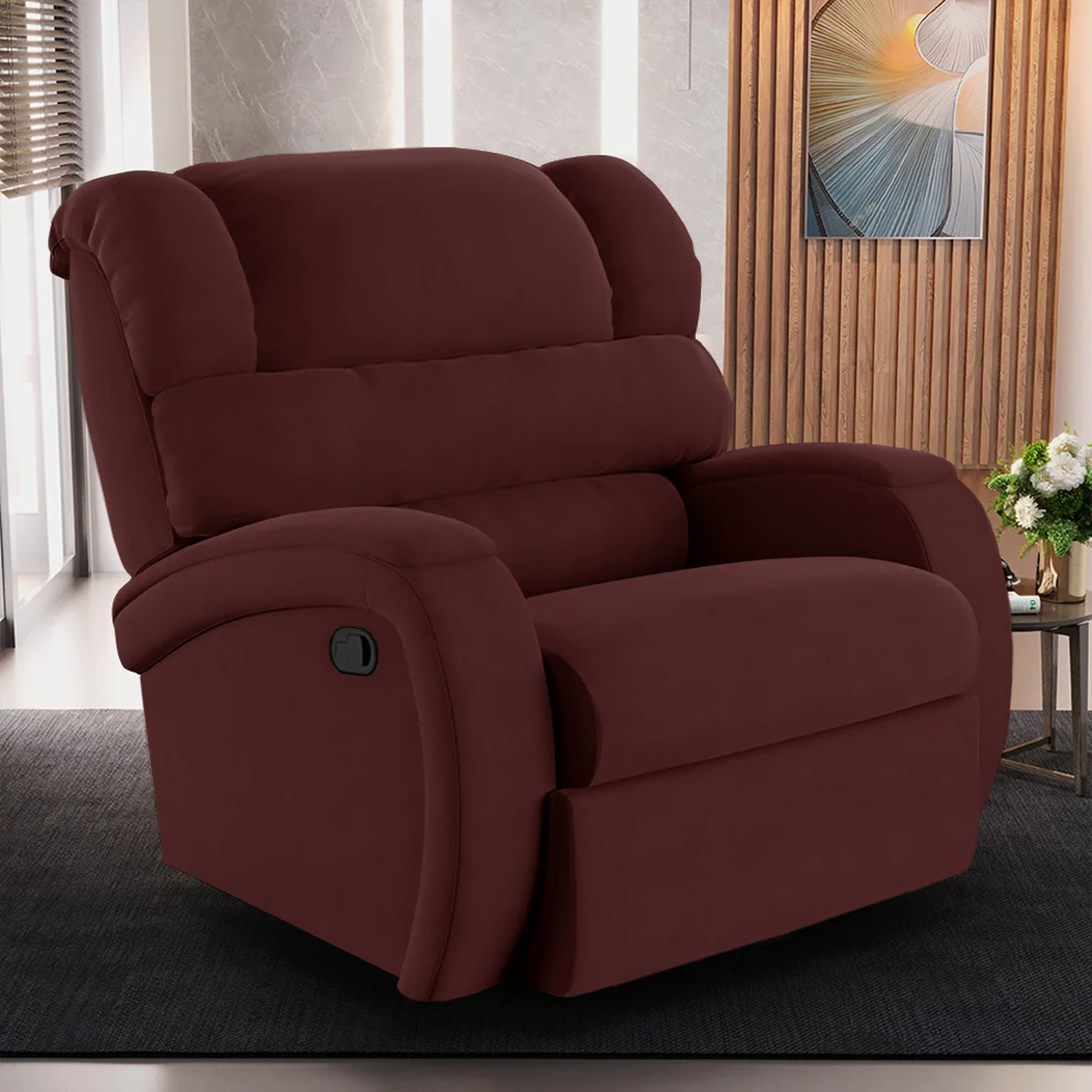 Hora de transformar sua Sala De Estar em um espaço de entretenimento comparável a uma sala de cinema privada? A Poltrona do Papai Reclinável Kalie Manual Gatilho FH9 Veludo Vinho, da Mpozenato é a adição perfeita para alcançar esse sonho.