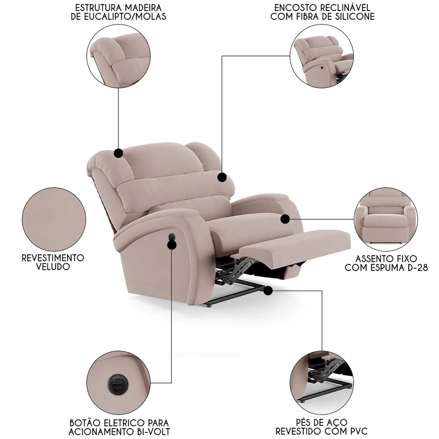 Tipo de Encosto: Reclinável.