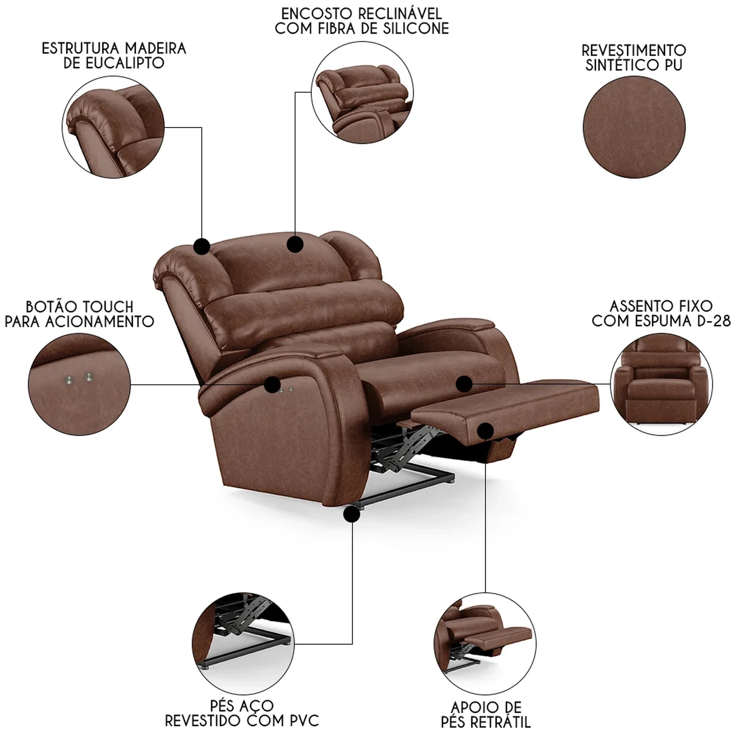 Hora de deixar a sua Sala De Estar mais moderna e transformar em um espaço de entretenimento de última geração com a Poltrona do Papai Reclinável Kalie Power Touch FH9 PU Marrom Brilho, da Mpozenato!