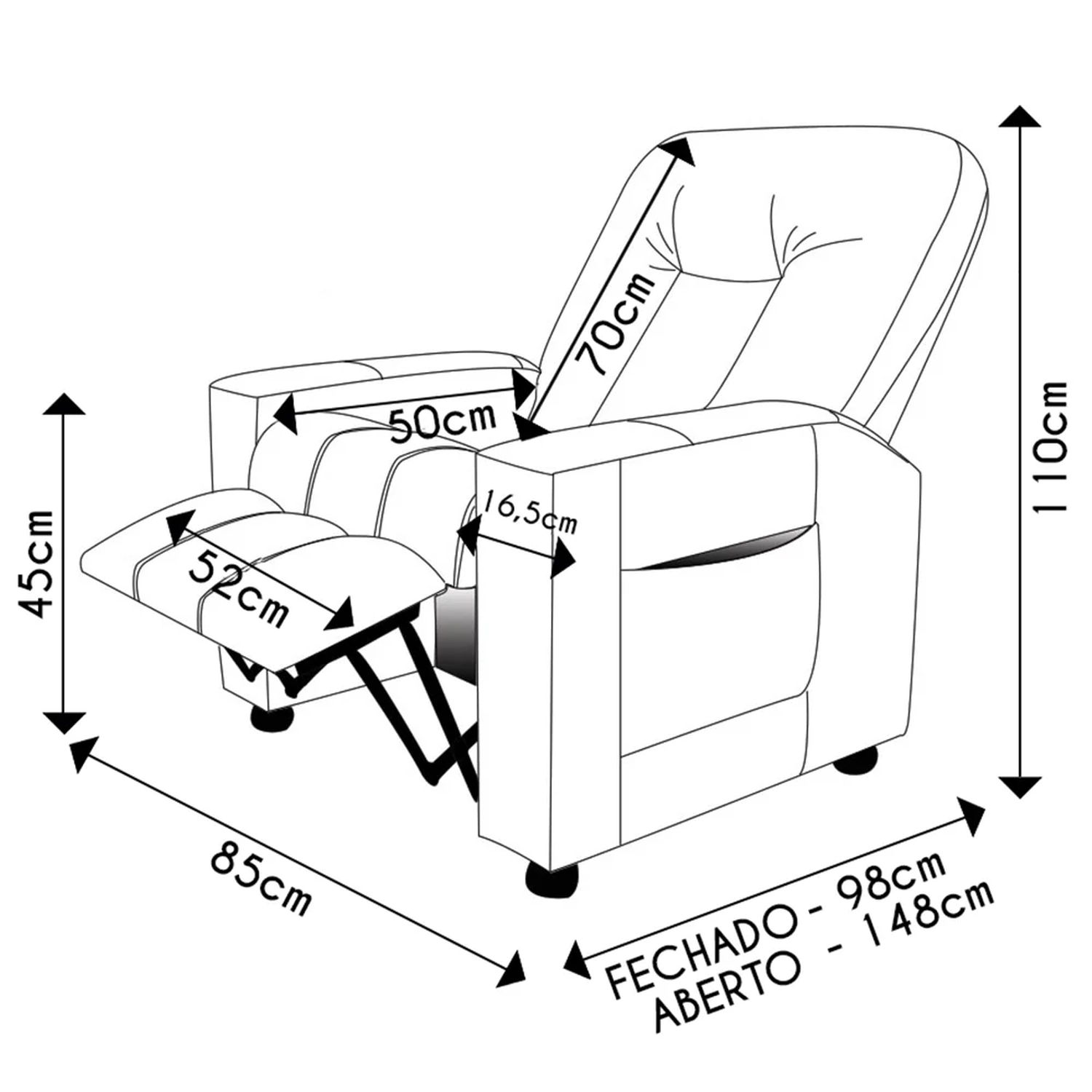 Profundidade Total Aberta: 148 cm.
