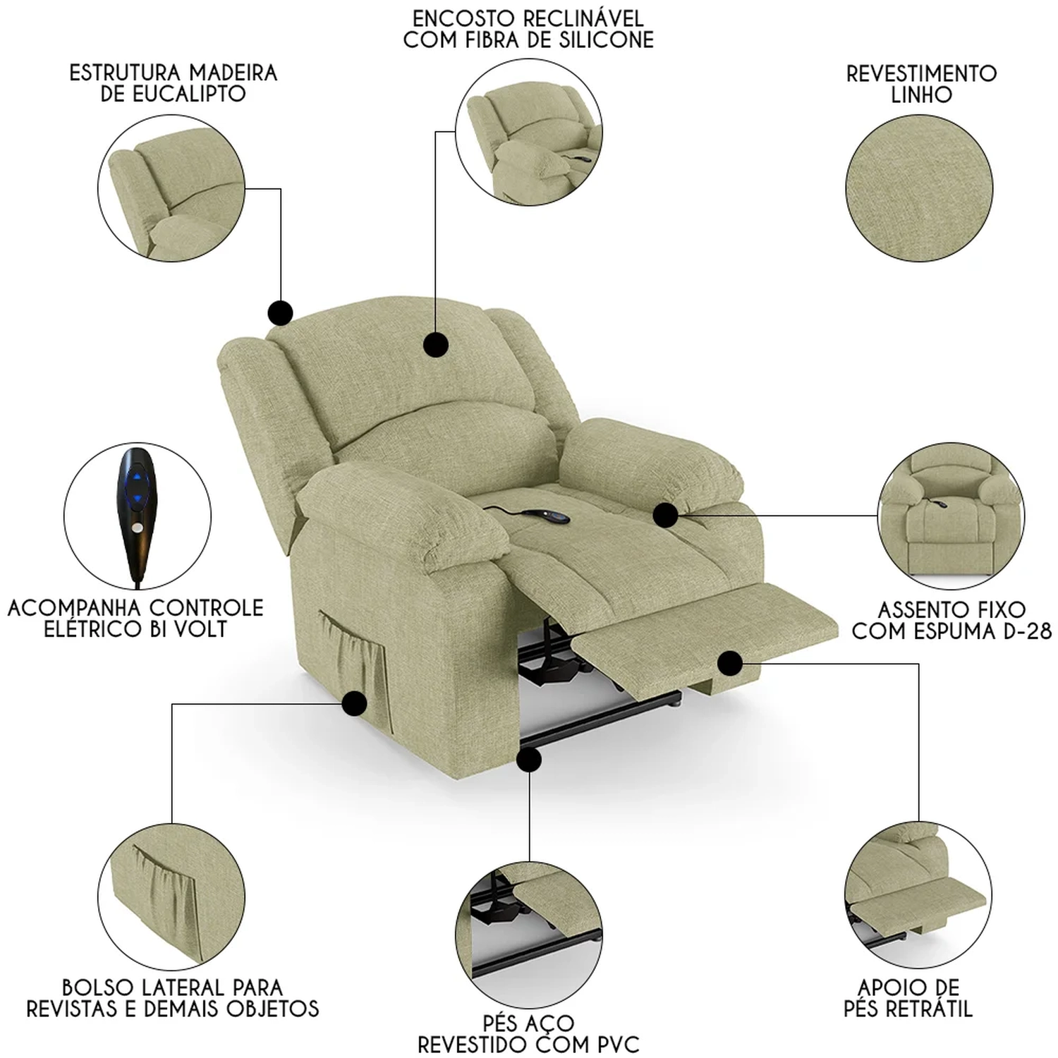 Imagine transformar sua Sala De Estar em um espaço de entretenimento de última geração com a Poltrona do Papai Reclinável Pietra Controle Power Elétrico FH9 Linho Bege, da Mpozenato!