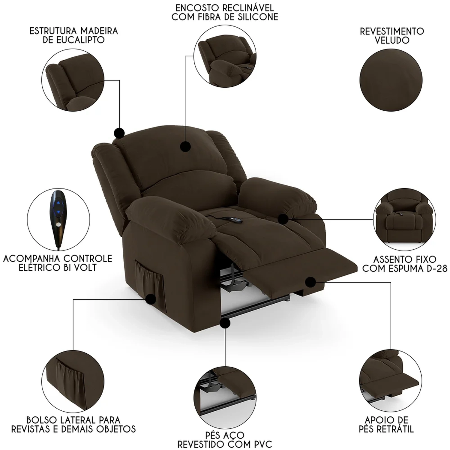 Imagine transformar sua Sala De Estar em um espaço de entretenimento de última geração com a Poltrona do Papai Reclinável Pietra Controle Power Elétrico FH9 Veludo Marrom, da Mpozenato!