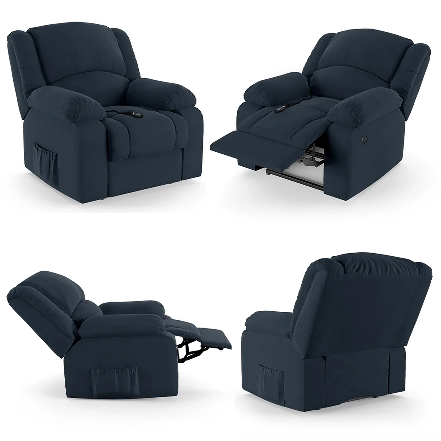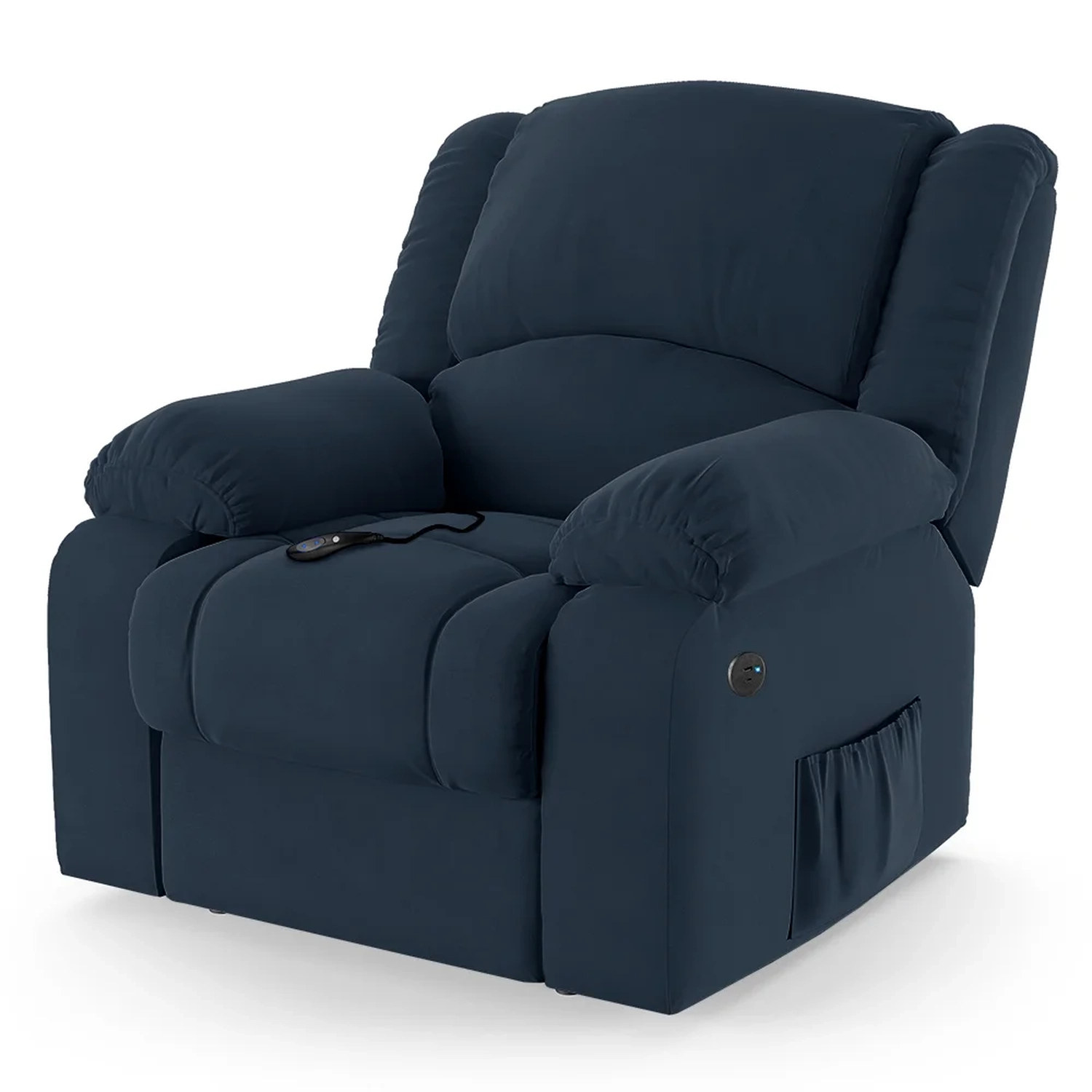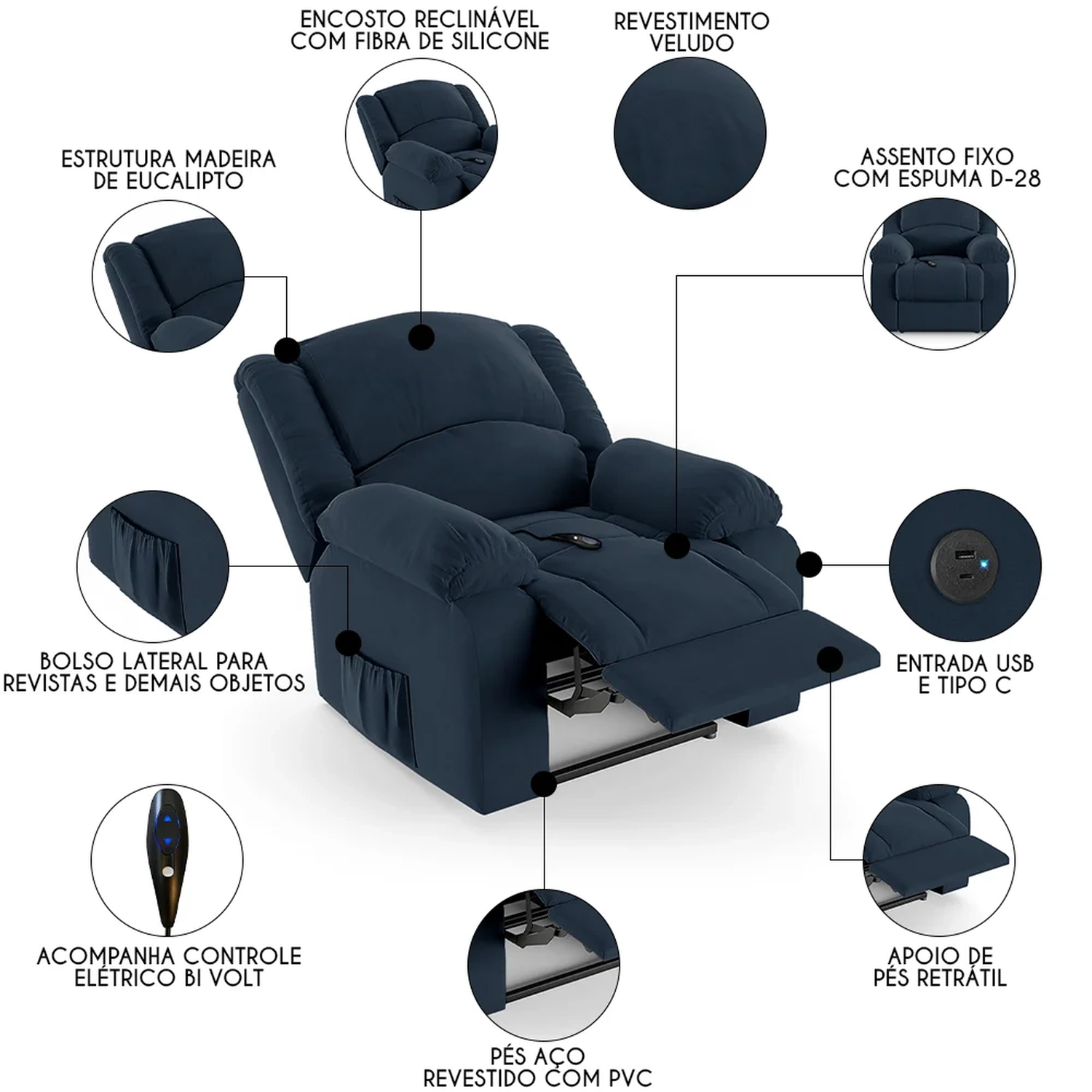 Imagine transformar sua Sala De Estar em um espaço de entretenimento de última geração com a Poltrona do Papai Reclinável Pietra Controle Power Elétrico USB FH9 Veludo Azul, da Mpozenato!