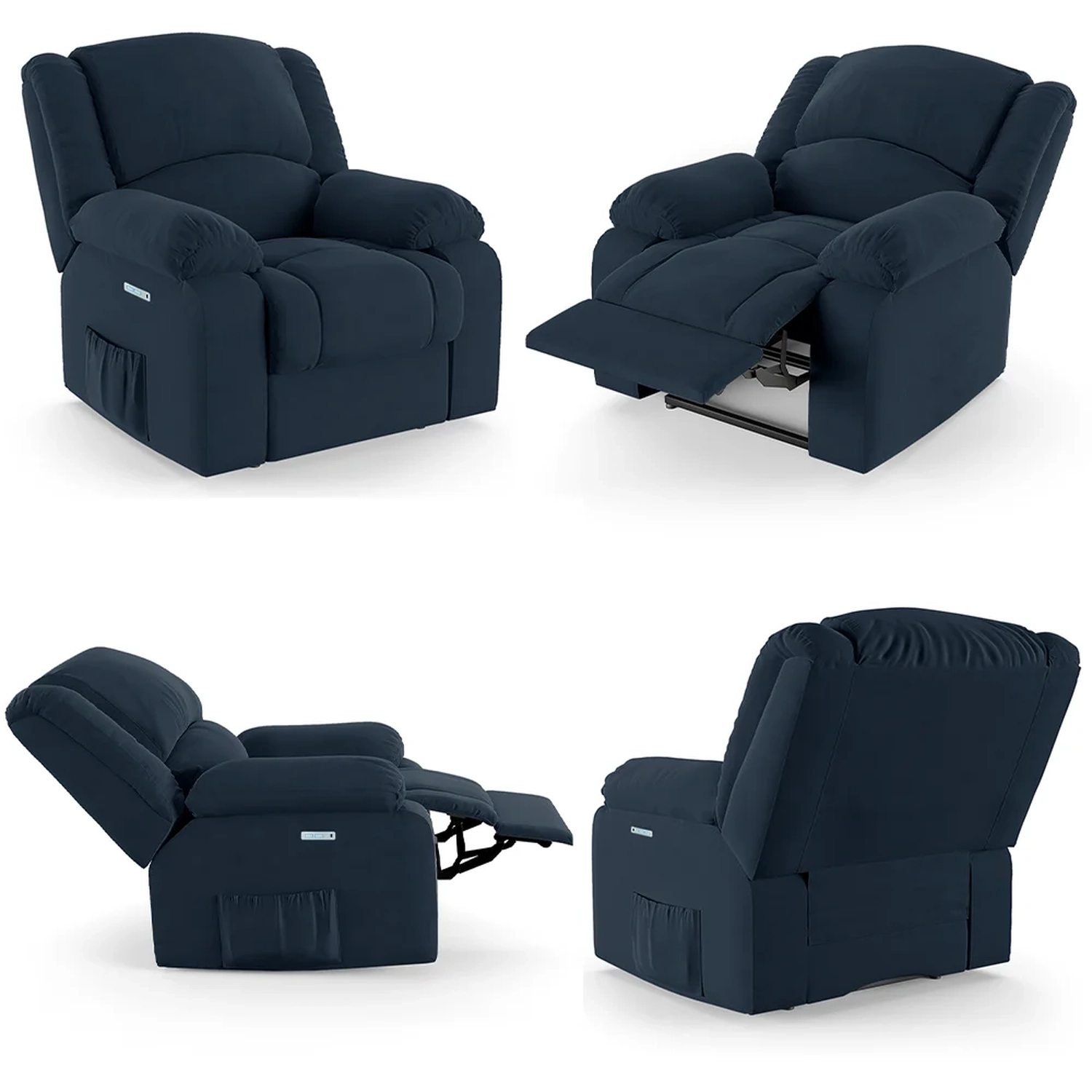 Hora de deixar a sua Sala De Estar mais moderna e transformar em um espaço de entretenimento de última geração com a Poltrona do Papai Reclinável Pietra Elétrica LED FH9 Veludo Azul, da Mpozenato!