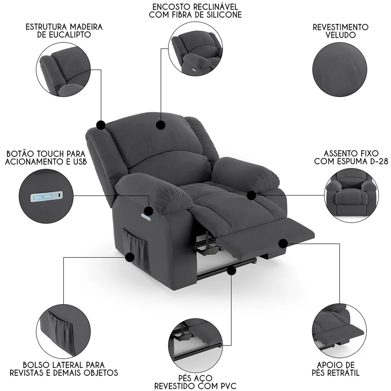 Tipo de Encosto: Reclinável.