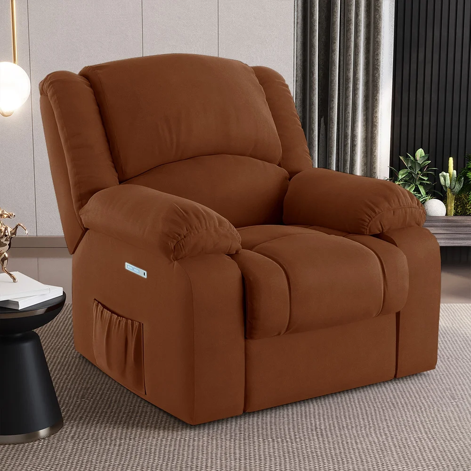 Hora de deixar a sua Sala De Estar mais moderna e transformar em um espaço de entretenimento de última geração com a Poltrona do Papai Reclinável Pietra Elétrica LED FH9 Veludo Terracota, da Mpozenato!