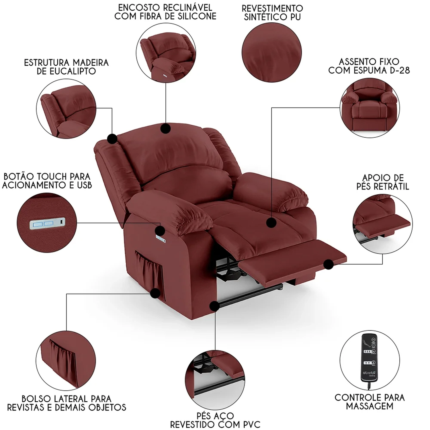 A Poltrona do Papai Reclinável Pietra Elétrica LED Massagem FH9 PU Vermelho, da Mpozenato é deal para transformar a sua Sala De Estar em um espaço confortável de entretenimento de última geração!