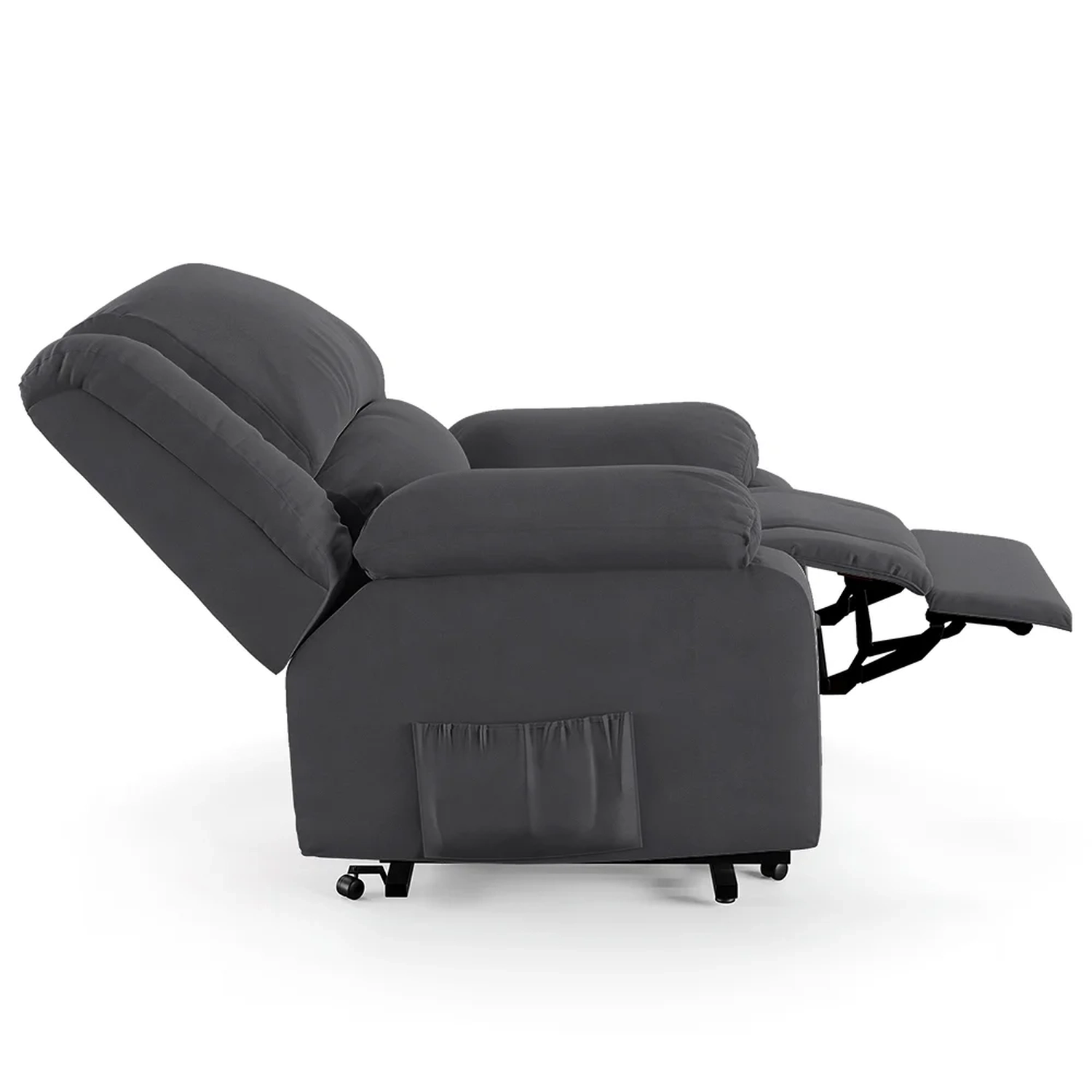 Com seu revestimento de qualidade, ela não só oferece uma superfície fácil de limpar, mas também um toque de sofisticação ao ambiente. Produzida com estrutura em eucalipto, assento em espuma D28 e molas, encosto em fibra de silicone são materiais que garantem mais qualidade e durabilidade a peça. O mecanismo LIFT é um exemplo de inovação, permitindo um ajuste suave da inclinação e elevação da poltrona, tornando-a ideal para aqueles que buscam alívio e suporte após um longo dia. Seja mergulhando nas páginas de uma revista, um bom livro que pode ficar no bolso lateral ou se deliciando com seus filmes e séries prediletos. A Poltrona Pós Operatório traz funcionalidade de elevação benéfica para evitar a força nos joelhos na hora de se levantar, para pessoas que enfrentam desafios de mobilidade, idosos ou gestantes, facilitando o movimento de sentar e levantar sem esforço adicional. A característica bivolt da Poltrona Do Papai com controle assegura que ela possa ser utilizada em diversos ambientes, adaptando-se a diferentes necessidades elétricas sem a preocupação de incompatibilidade de tensão. O apoio para os pés, que se eleva em conjunto com o encosto, é projetado para promover uma postura ergonômica, aliviando a tensão nas pernas e na lombar, enquanto os braços largos oferecem um suporte adicional e um conforto extra durante o uso.