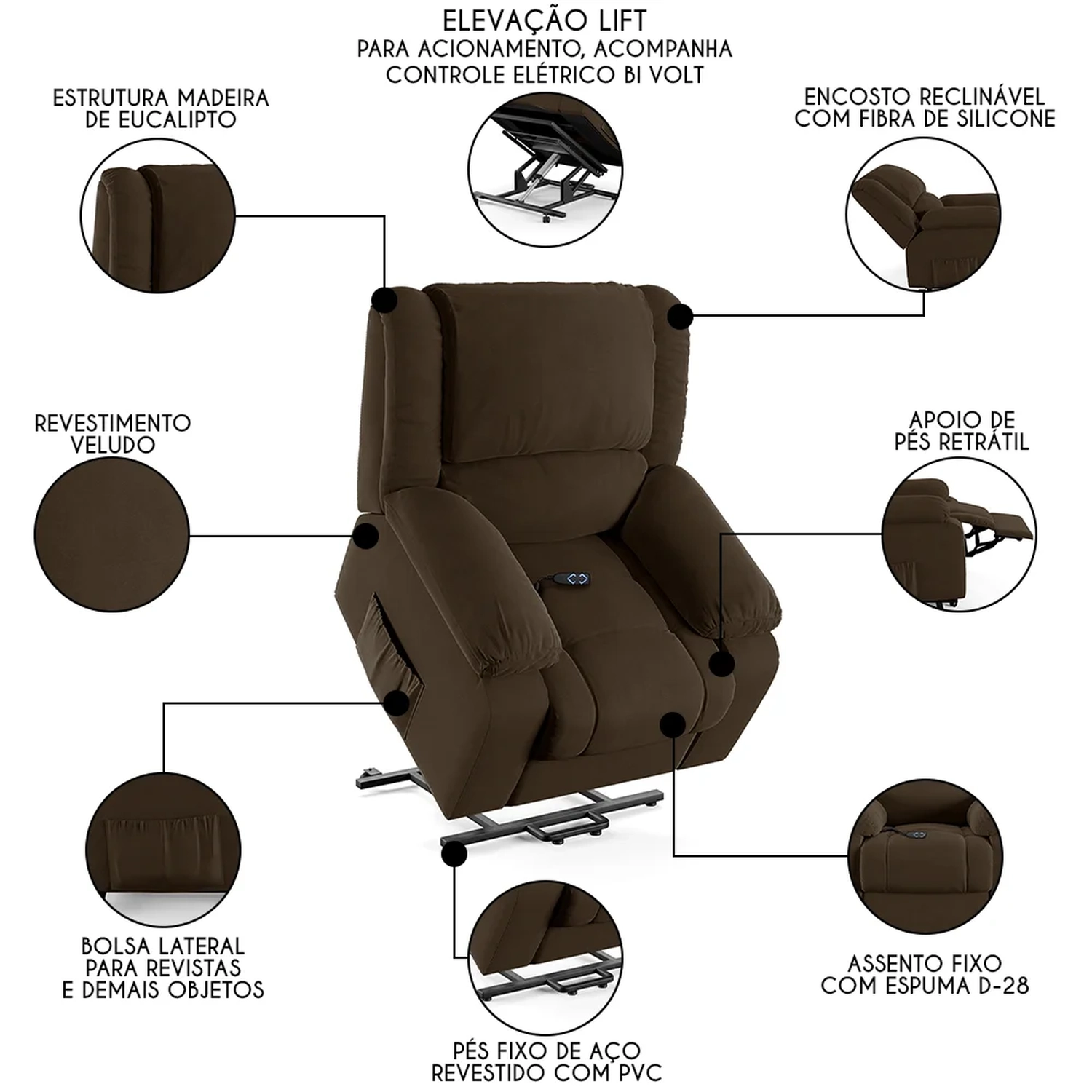 Mecanismo: Controle Elétrico Lift de Elevação Bi Volt.