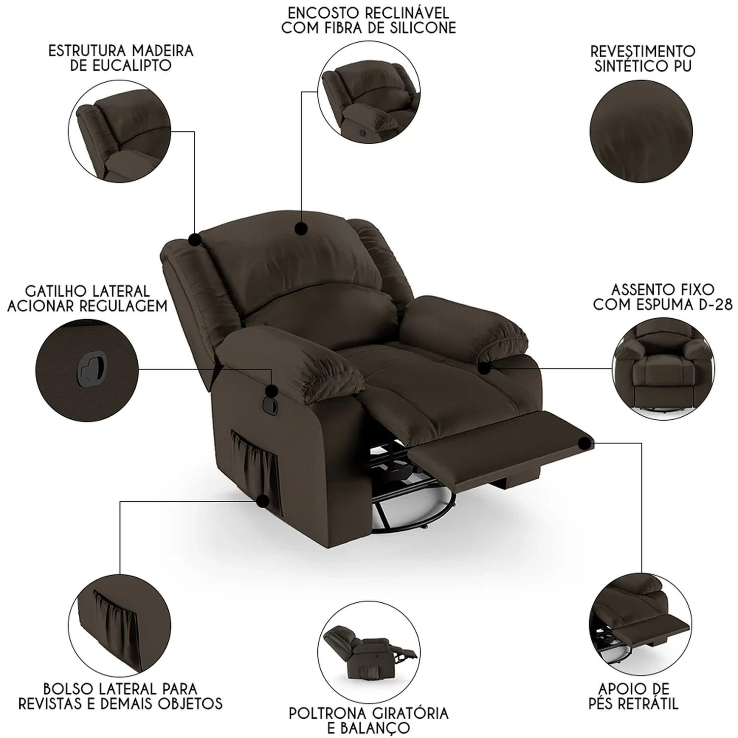 Transforme a sua Sala De Estar em um espaço de entretenimento comparável a uma sala de cinema privada! A Poltrona do Papai Reclinável Pietra Glider Giratória FH9 PU Marrom, da Mpozenato é a adição perfeita para alcançar esse sonho.
