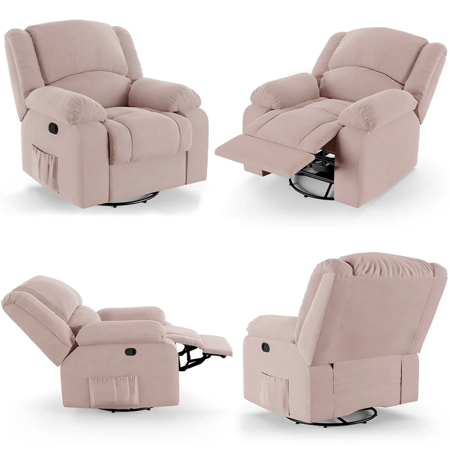 Transforme a sua Sala De Estar em um espaço de entretenimento comparável a uma sala de cinema privada! A Poltrona do Papai Reclinável Pietra Glider Giratória FH9 Veludo Rosê, da Mpozenato é a adição perfeita para alcançar esse sonho.