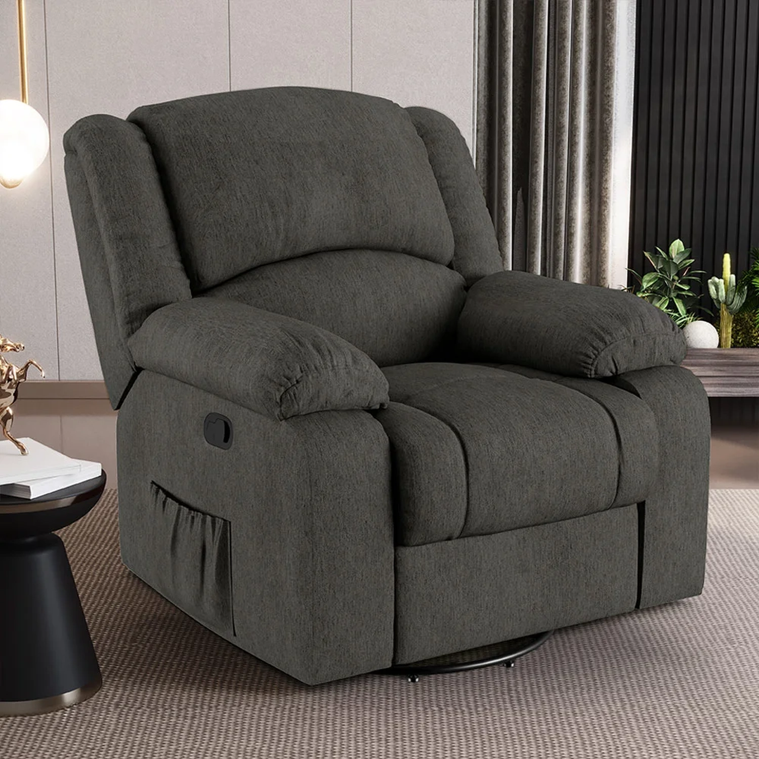 Que tal transformar a sua Sala De Estar em um espaço de entretenimento comparável a uma sala de cinema privada? A Poltrona do Papai Reclinável Pietra Glider Giratória USB FH9 Linho Grafite, da Mpozenato é a adição perfeita para alcançar esse sonho.