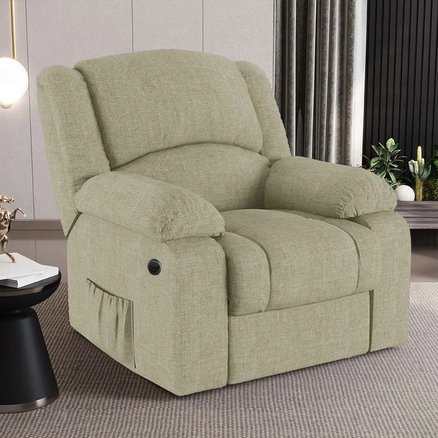Com um design que alia modernidade e elegância, a Poltrona Reclinável é a escolha perfeita para aqueles que não abrem mão do conforto supremo. Seja mergulhando nas páginas de uma revista, um bom livro que pode ficar no bolso lateral ou se deliciando com seus filmes e séries prediletos, esta Poltrona Do Papai promete ser o seu refúgio particular. A facilidade de ajuste com o botão elétrico permite que você encontre a posição perfeita com o toque de um botão, pensado para proporcionar uma experiência imersiva sem igual. E não é só sobre conforto, mas também sobre durabilidade e estilo, como a madeira maciça de eucalipto e o revestimento de alta qualidade. As dimensões generosas garantem que você tenha espaço de sobra para relaxar, enquanto a capacidade de suportar até 130kg assegura que é uma peça robusta e confiável. Não é apenas uma poltrona, é um upgrade na sua qualidade de vida, trazendo o glamour do cinema diretamente para o seu lar.