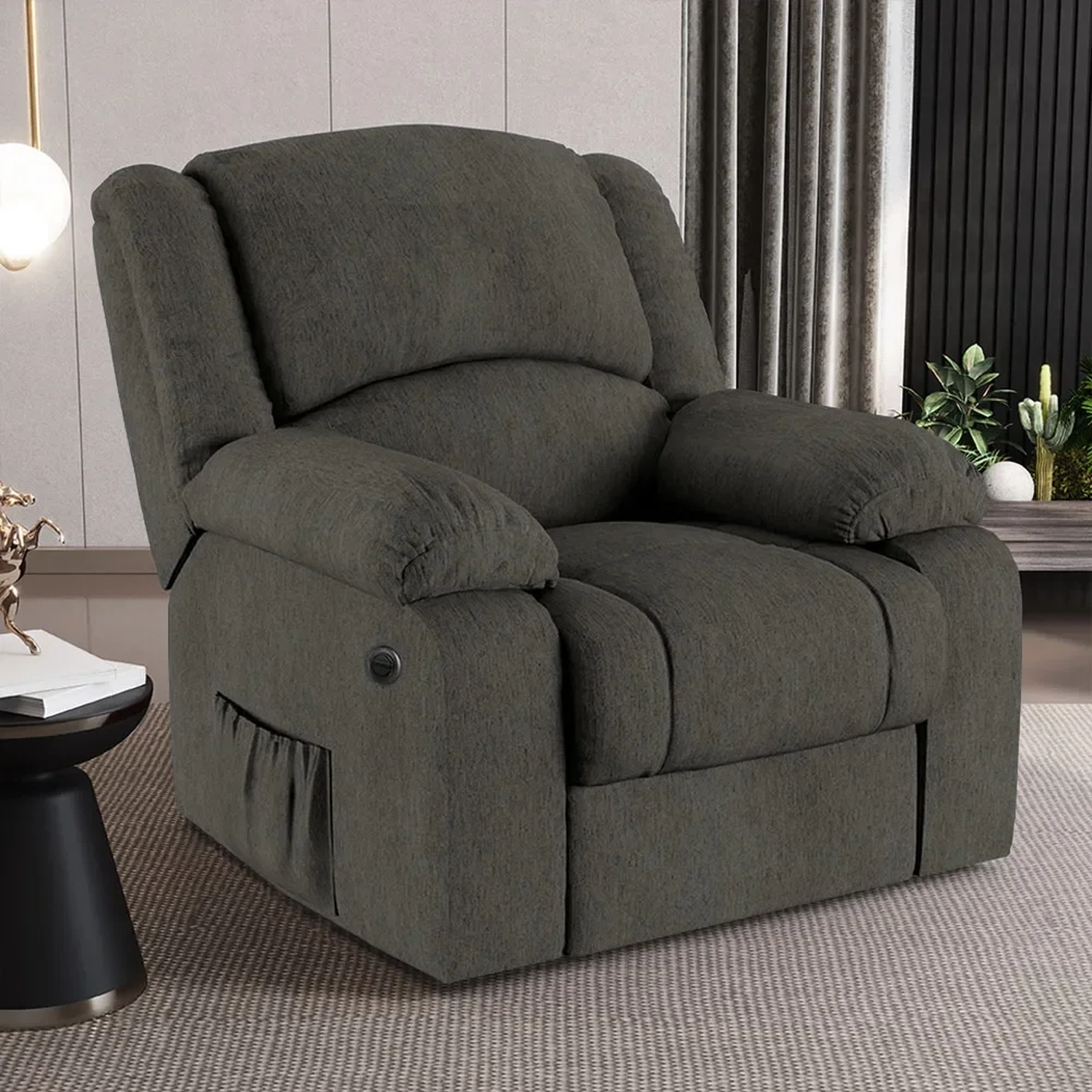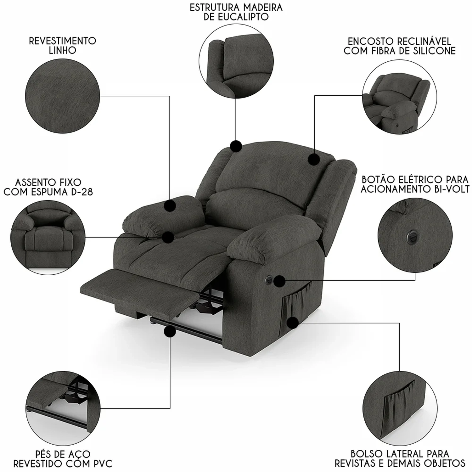 Transforme sua Sala De Estar em um espaço de entretenimento de última geração com a Poltrona do Papai Reclinável Pietra Power Elétrica FH9 Linho Grafite, da Mpozenato!