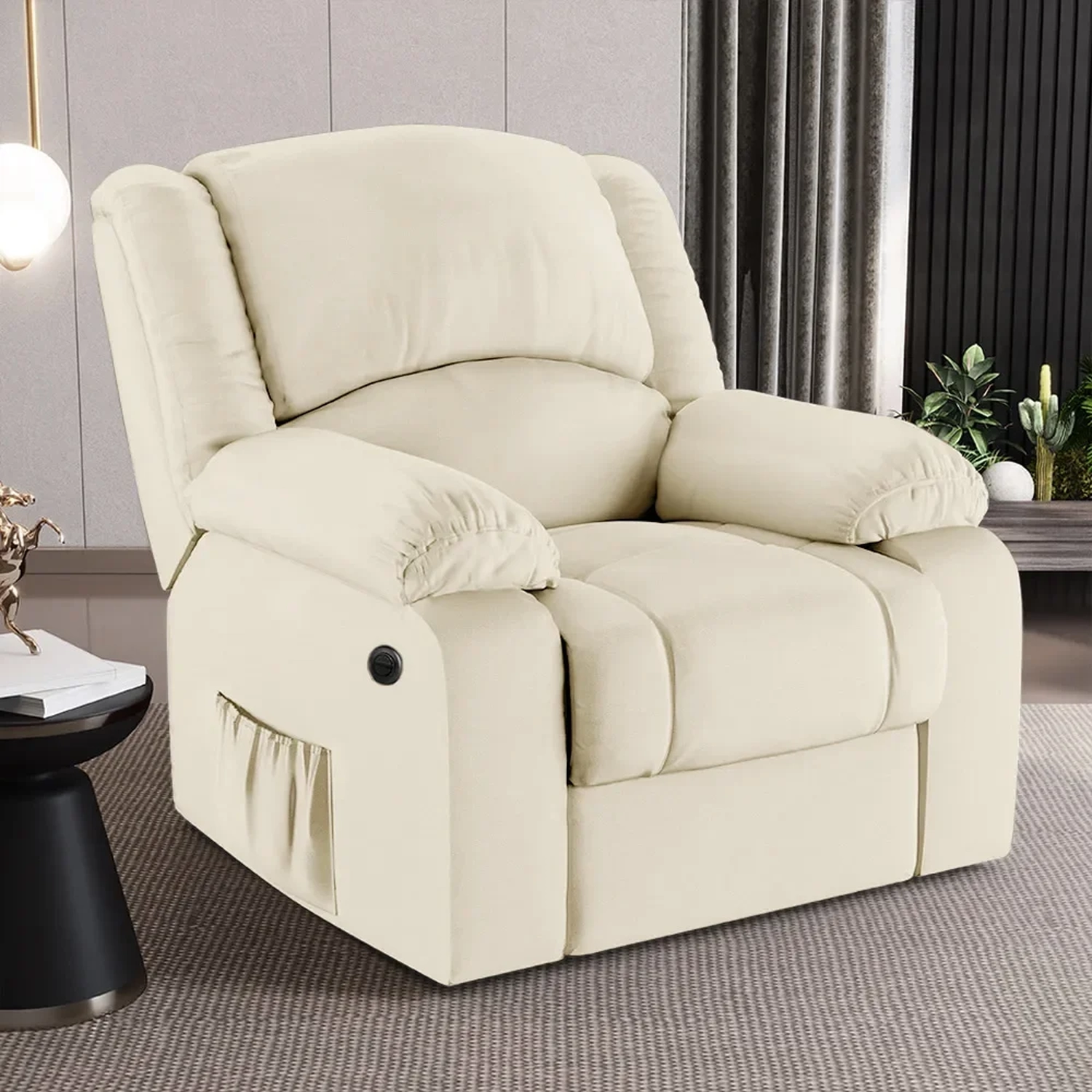 Com um design que alia modernidade e elegância, a Poltrona Reclinável é a escolha perfeita para aqueles que não abrem mão do conforto supremo. Seja mergulhando nas páginas de uma revista, um bom livro que pode ficar no bolso lateral ou se deliciando com seus filmes e séries prediletos, esta Poltrona Do Papai promete ser o seu refúgio particular. A facilidade de ajuste com o botão elétrico permite que você encontre a posição perfeita com o toque de um botão, pensado para proporcionar uma experiência imersiva sem igual. E não é só sobre conforto, mas também sobre durabilidade e estilo, como a madeira maciça de eucalipto e o revestimento de alta qualidade. As dimensões generosas garantem que você tenha espaço de sobra para relaxar, enquanto a capacidade de suportar até 130kg assegura que é uma peça robusta e confiável. Não é apenas uma poltrona, é um upgrade na sua qualidade de vida, trazendo o glamour do cinema diretamente para o seu lar.