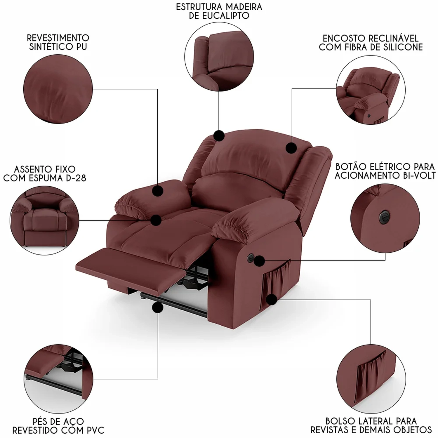 Transforme sua Sala De Estar em um espaço de entretenimento de última geração com a Poltrona do Papai Reclinável Pietra Power Elétrica FH9 PU Vermelho, da Mpozenato!