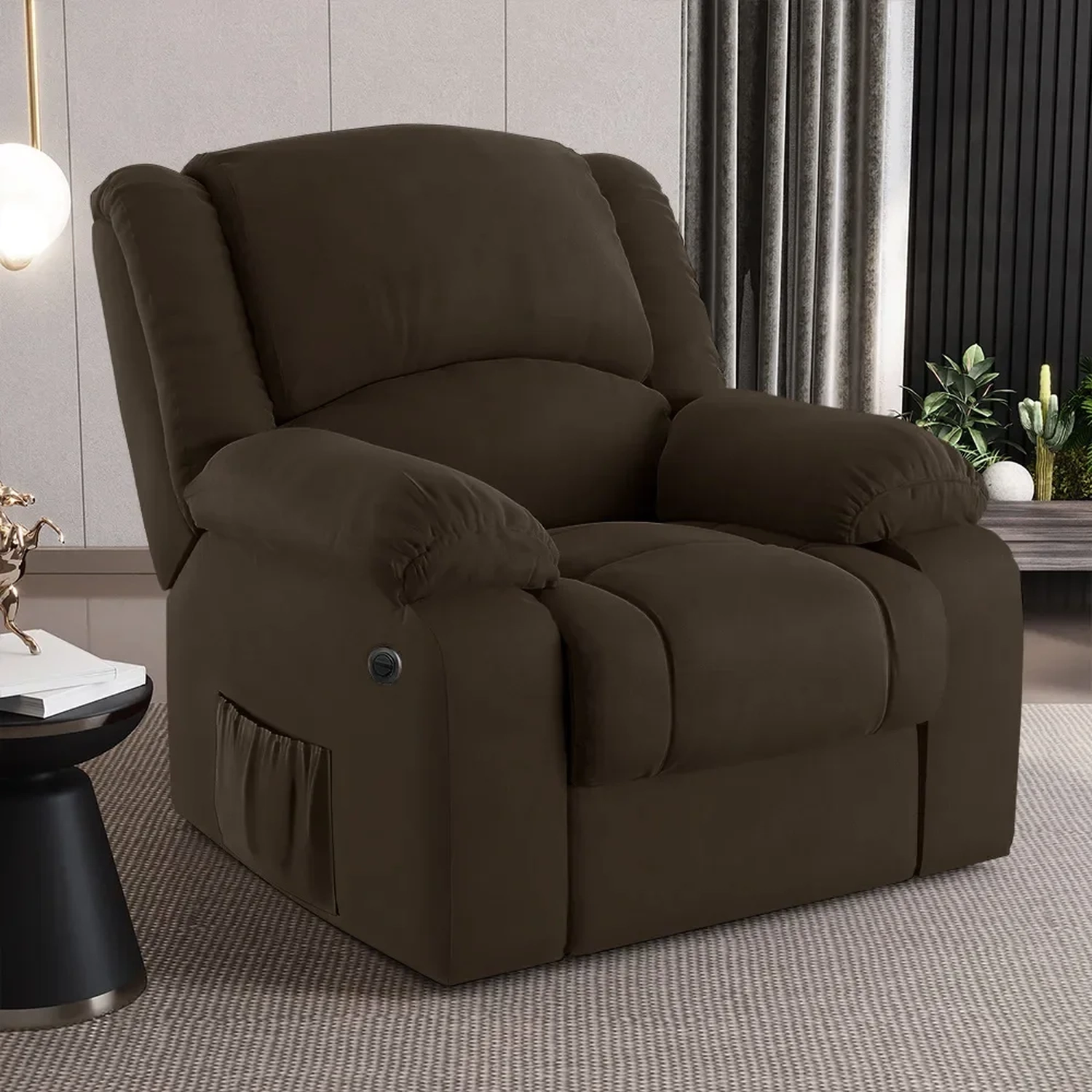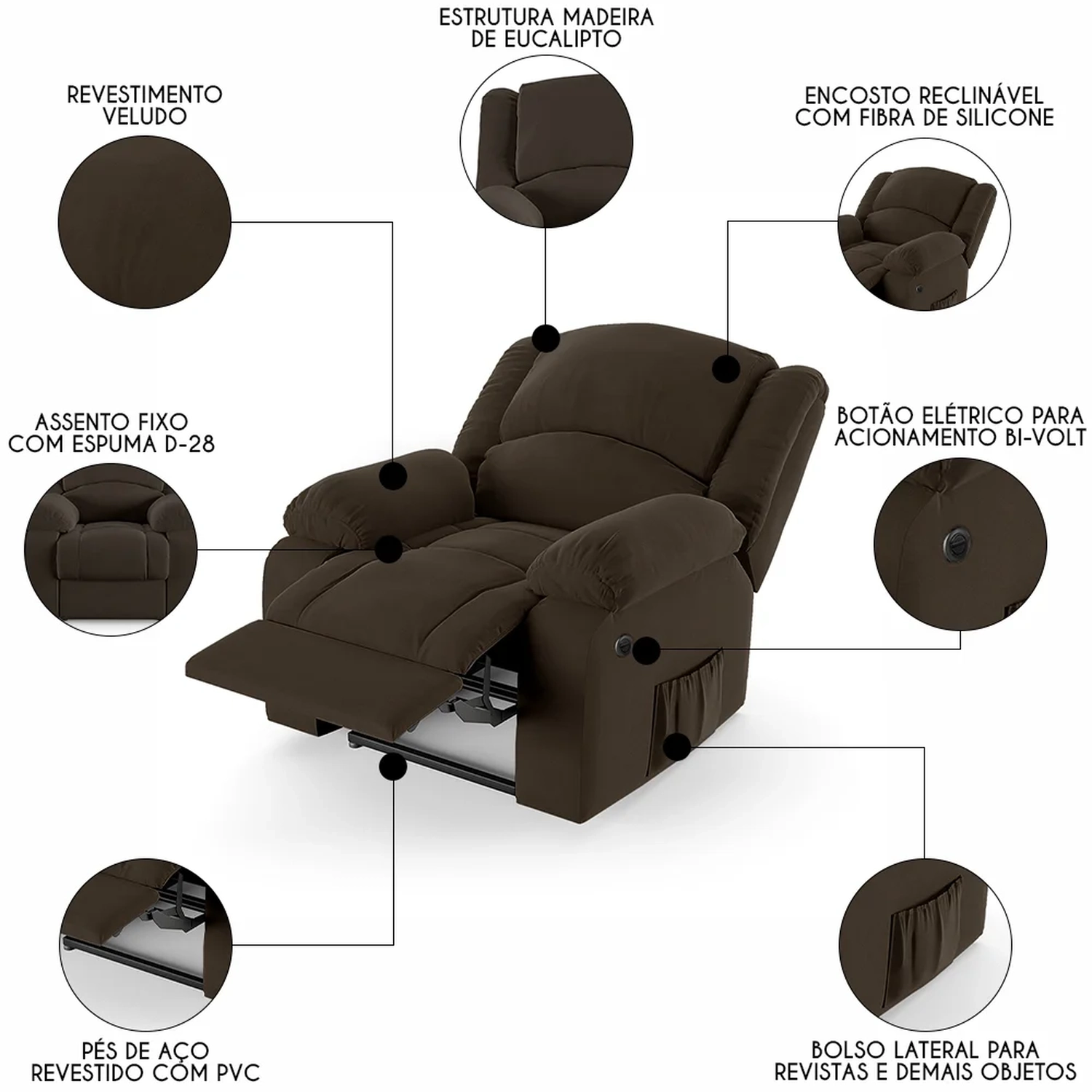 Transforme sua Sala De Estar em um espaço de entretenimento de última geração com a Poltrona do Papai Reclinável Pietra Power Elétrica FH9 Veludo Marrom, da Mpozenato!