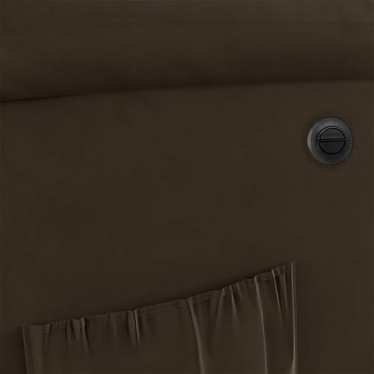 - Bolso lateral para revistas e controle.