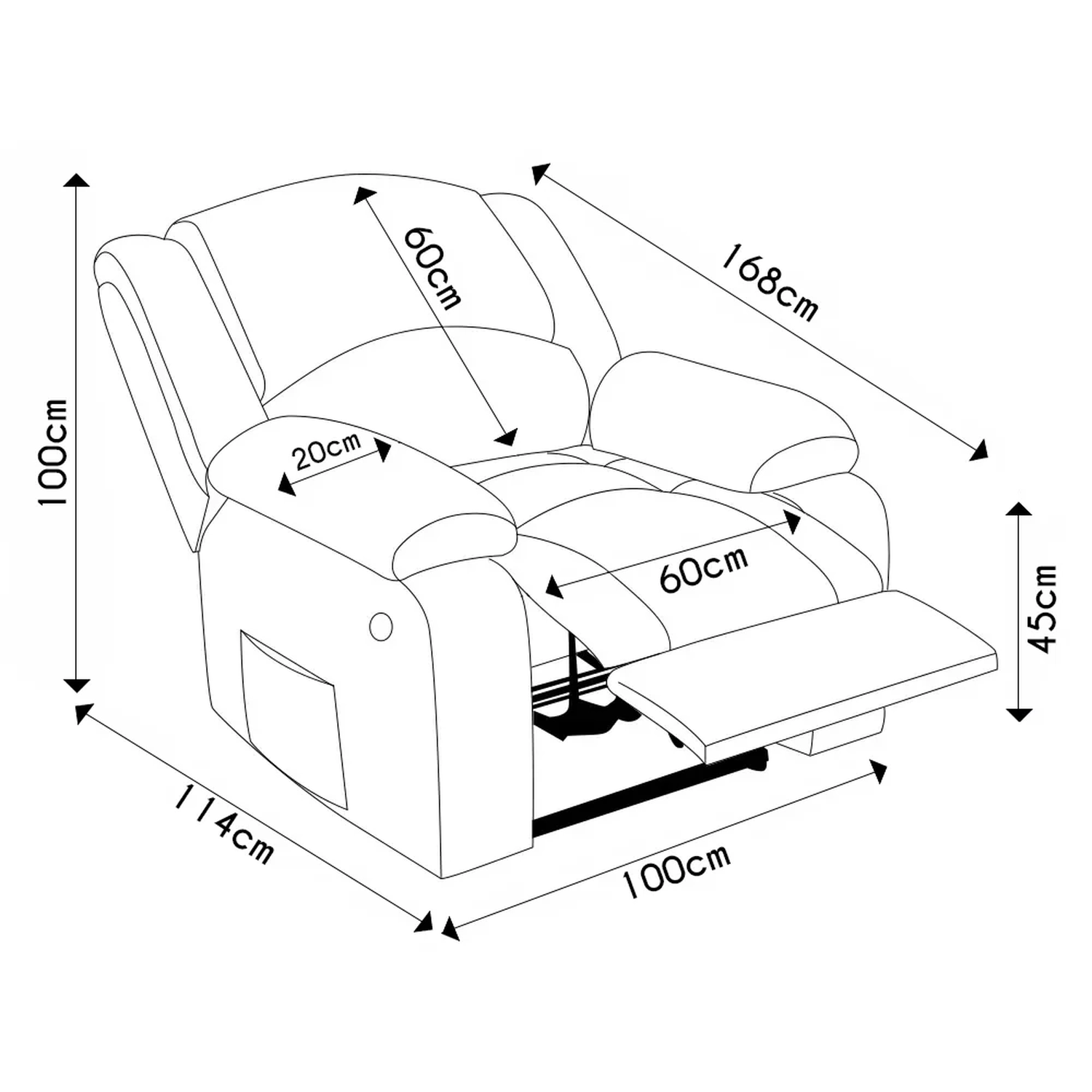 Largura do encosto: 60 cm.