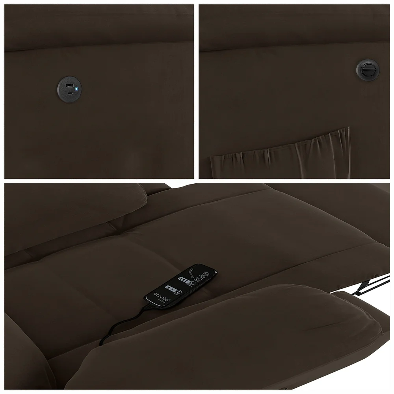 Mecanismo: Botão Elétrico, controle de massagem e entrada USB Bi-volt.
