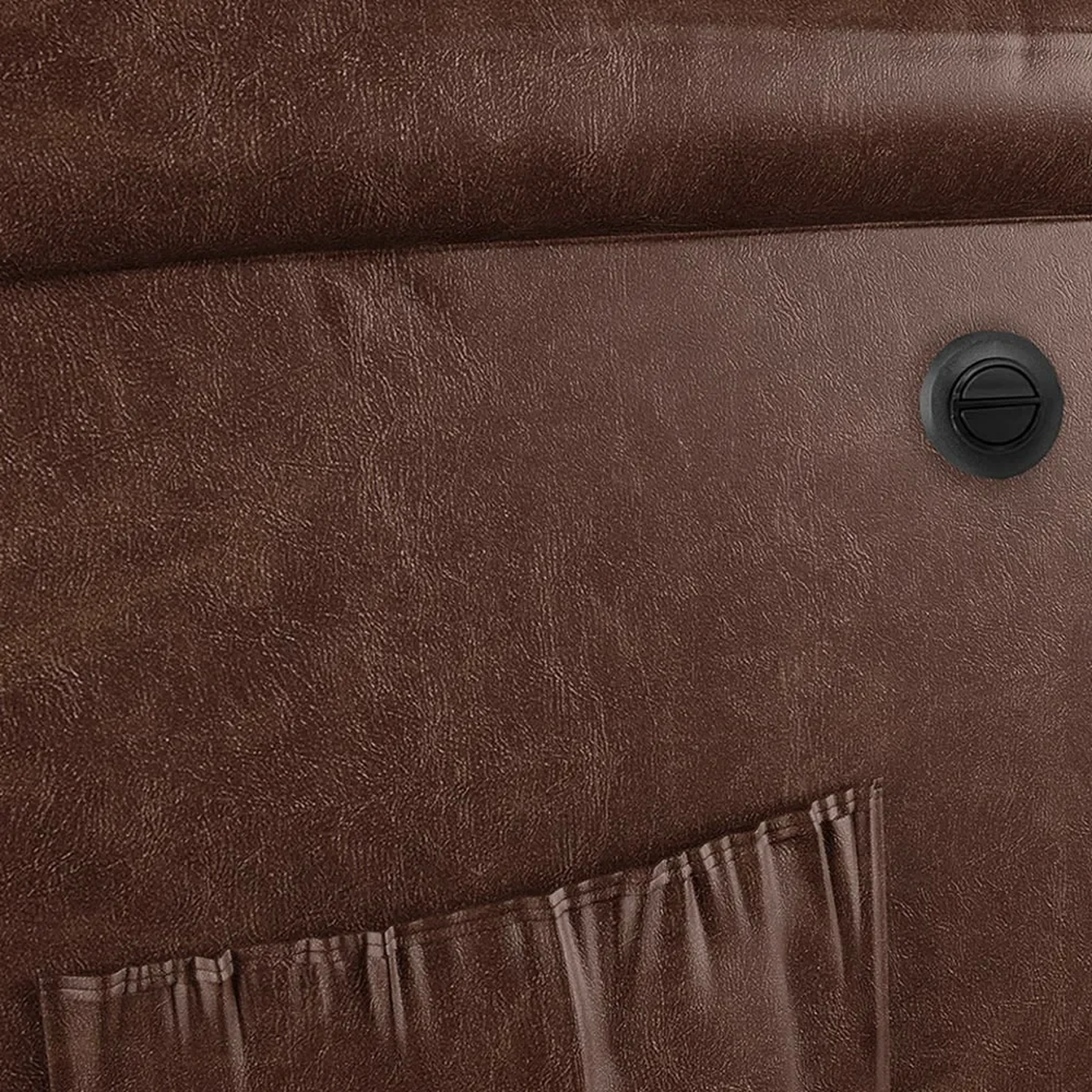 - Bolso lateral para revistas e controle.
