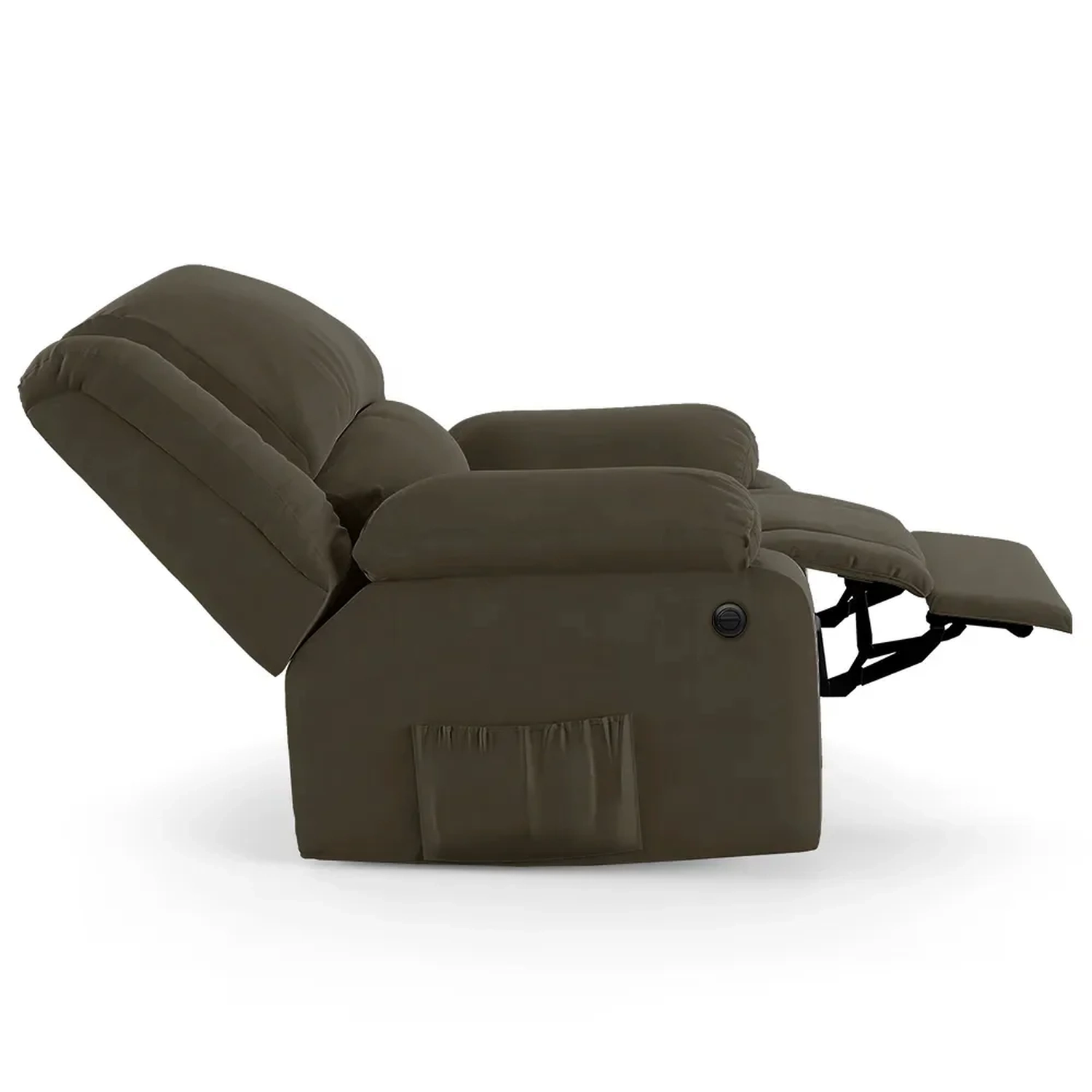 - Bolso lateral para revistas e controle.
