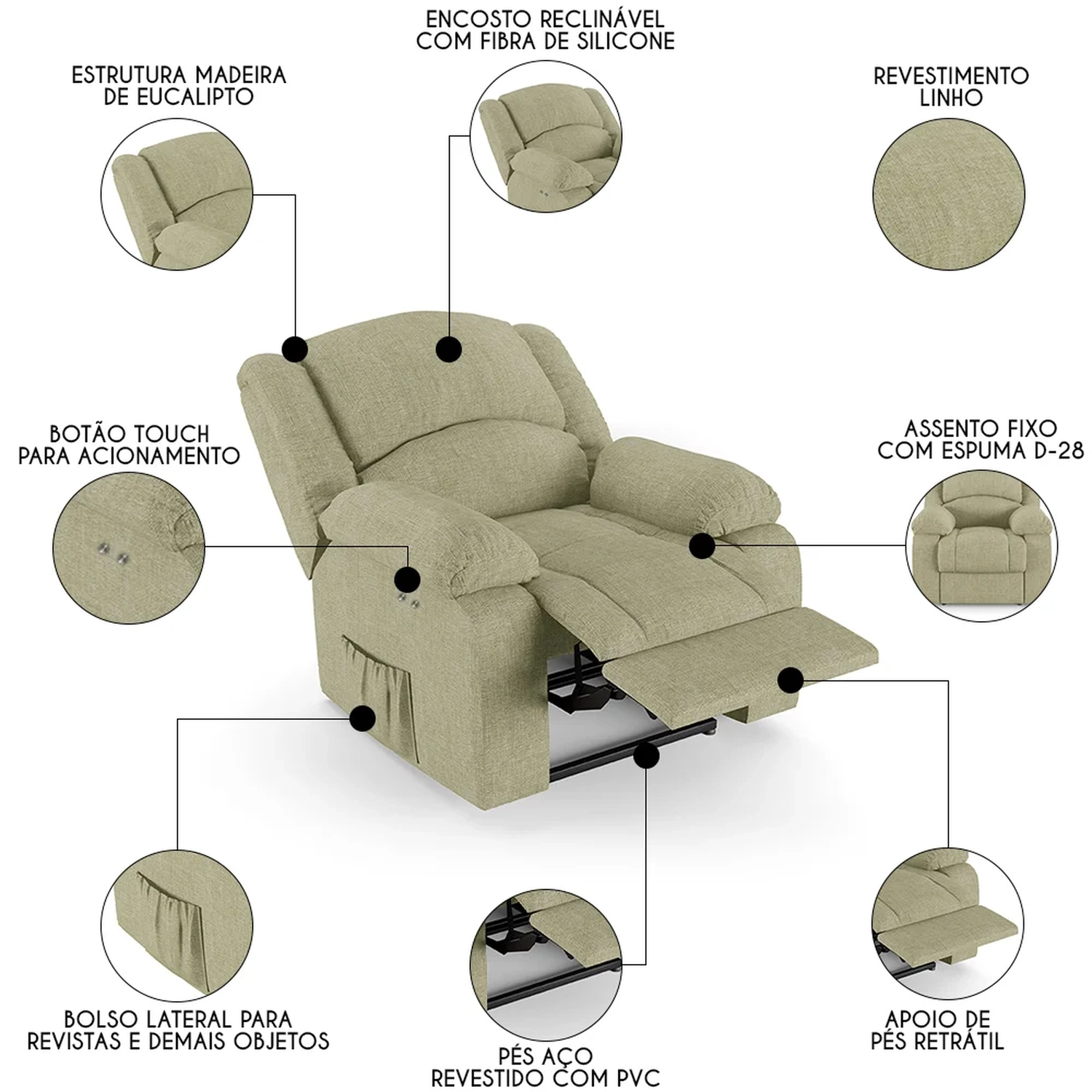 Hora de deixar a sua Sala De Estar mais moderna e transformar em um espaço de entretenimento de última geração com a Poltrona do Papai Reclinável Pietra Power Touch FH9 Linho Bege, da Mpozenato!