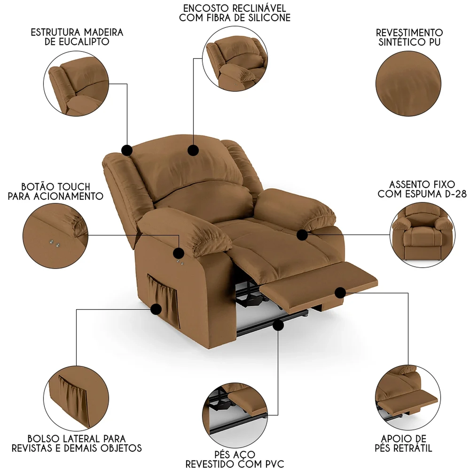Hora de deixar a sua Sala De Estar mais moderna e transformar em um espaço de entretenimento de última geração com a Poltrona do Papai Reclinável Pietra Power Touch FH9 PU Caramelo, da Mpozenato!
